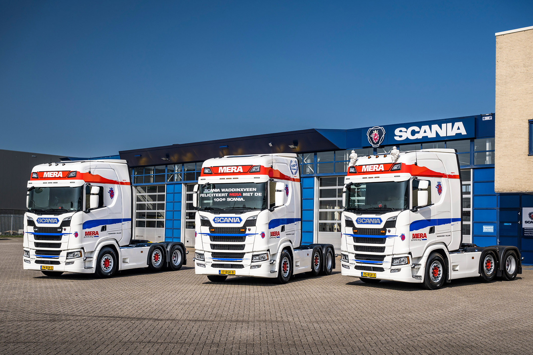 Mera Trans uit Waddinxveen nam recent zijn 100ste Scania in gebruik. Op zich zelf is dat al een mijlpaal. Maar bij Mera heeft die nog een extra glans omdat het bedrijf pas 16 jaar bestaat.