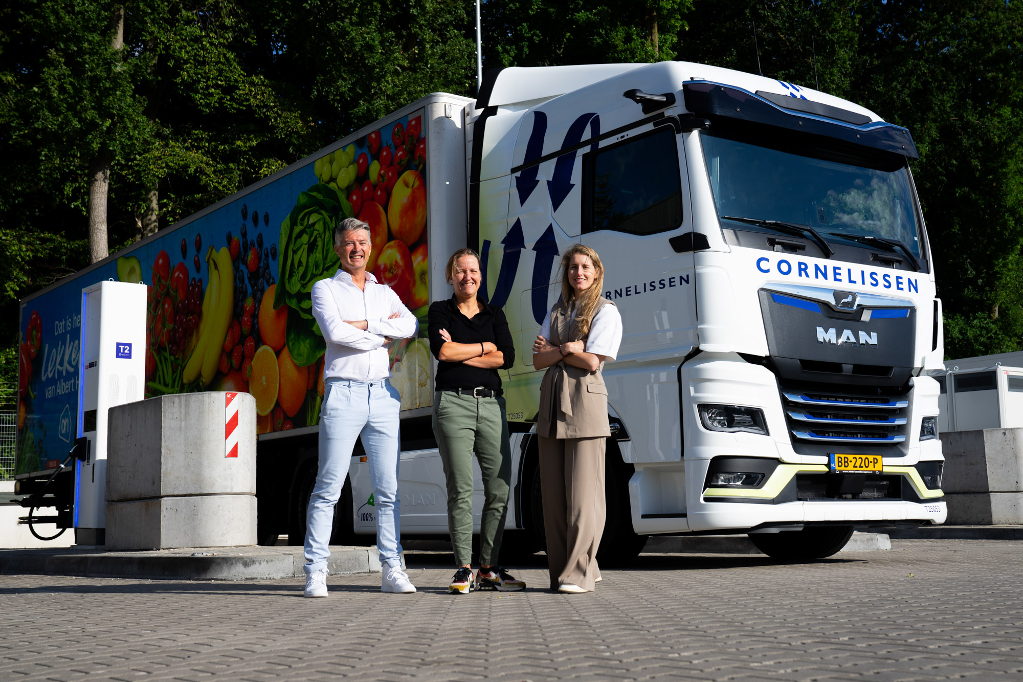 Cornelissen Transport heeft de eerste van in totaal 23 nieuwe elektrische trucks in ontvangst genomen die exclusief zullen worden ingezet voor de distributie van Albert Heijn. Het gaat om 21 eTGX trekkers en 2 eTGS bakwagens van MAN. Met deze trucks laten Albert Heijn en Cornelissen zien hoe hun samenwerking direct bijdraagt aan duurzamere distributie.