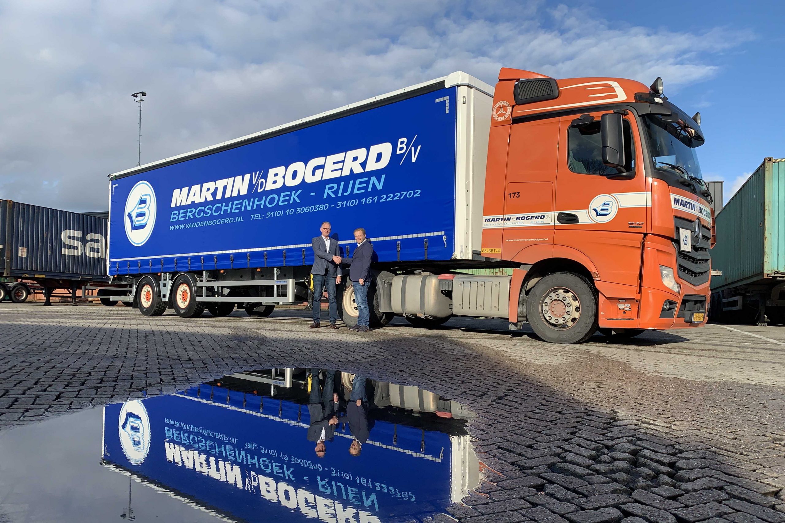 Martin van den Bogerd is al sinds jonge leeftijd werkzaam in de logistiek. In 2003 heeft hij Zijderhand Transport B.V. uit Moerkapelle overgenomen. Hier wordt het vervoer van betonproducten voor de weg- en waterbouw en het transport van zeecontainers verzorgd. Na 10 jaar is de locatie in Moerkapelle te klein en vestigt het transportbedrijf zich in Bergschenhoek. Met maar liefst 2,5 hectare bedrijfsterrein wordt hier onder andere het vervoer van houtproducten verzorgd. Met een meeneemheftruck is het mogelijk om deze materialen bij de klant te lossen. Vanwege de groei zijn er onlangs 25 nieuwe kooiaap-opleggers aangeschaft bij trailerbouwer Sterk.