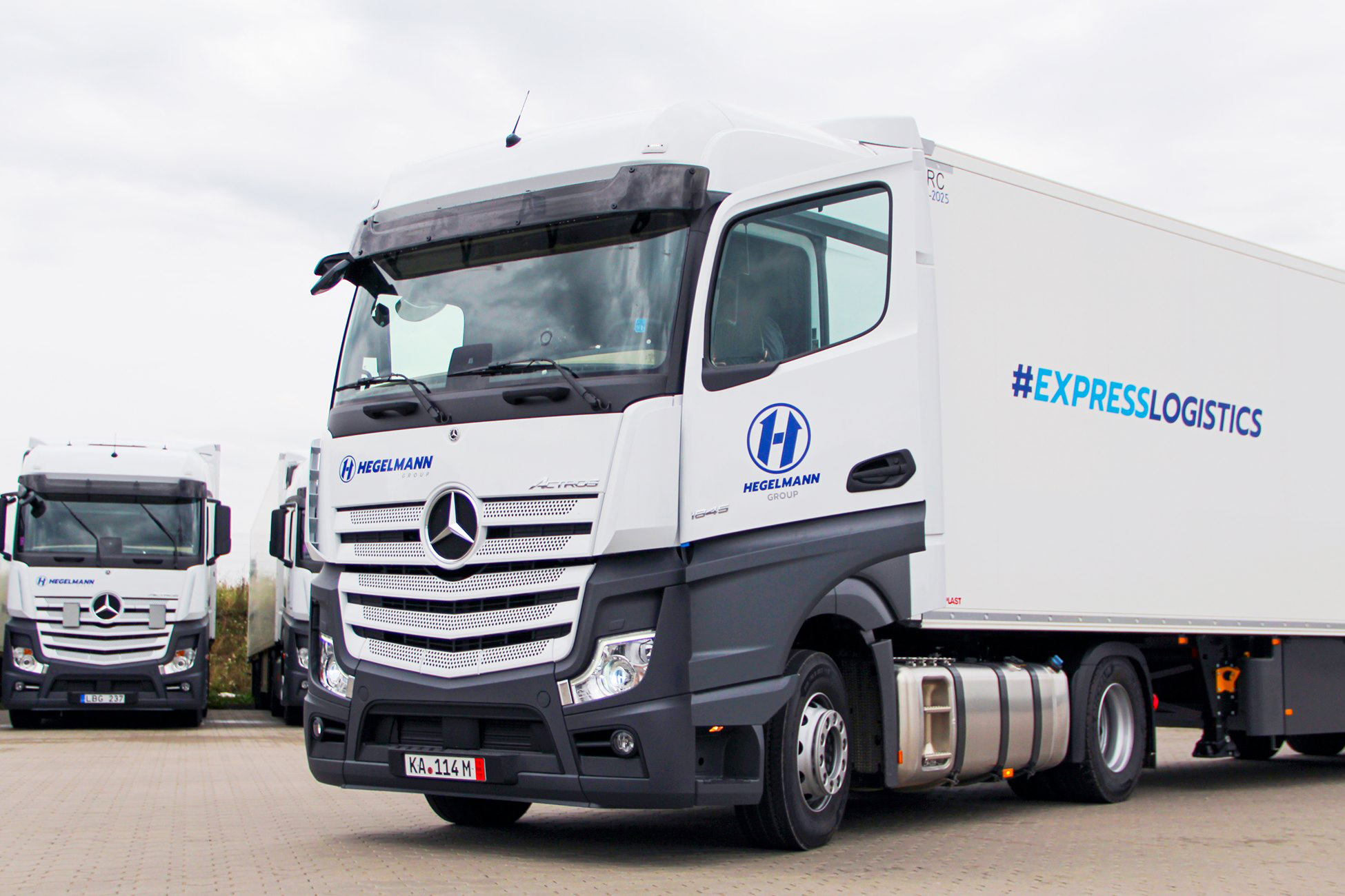 - Van links naar rechts: dr. Karel Knap, Hoofd Global Key Account Management Mercedes-Benz Trucks; Stina Fagerman, hoofd verkoop, marketing en services Mercedes-Benz Trucks; Siegfried Hegelmann, algemeen aandeelhouder Hegelmann Group; Anton Hegelmann, algemeen aandeelhouder Hegelmann Group; Tomas Jurgelevičius, algemeen directeur Hegelmann Group; Jean-Marc Diss, Head of Region Europe Mercedes-Benz Trucks