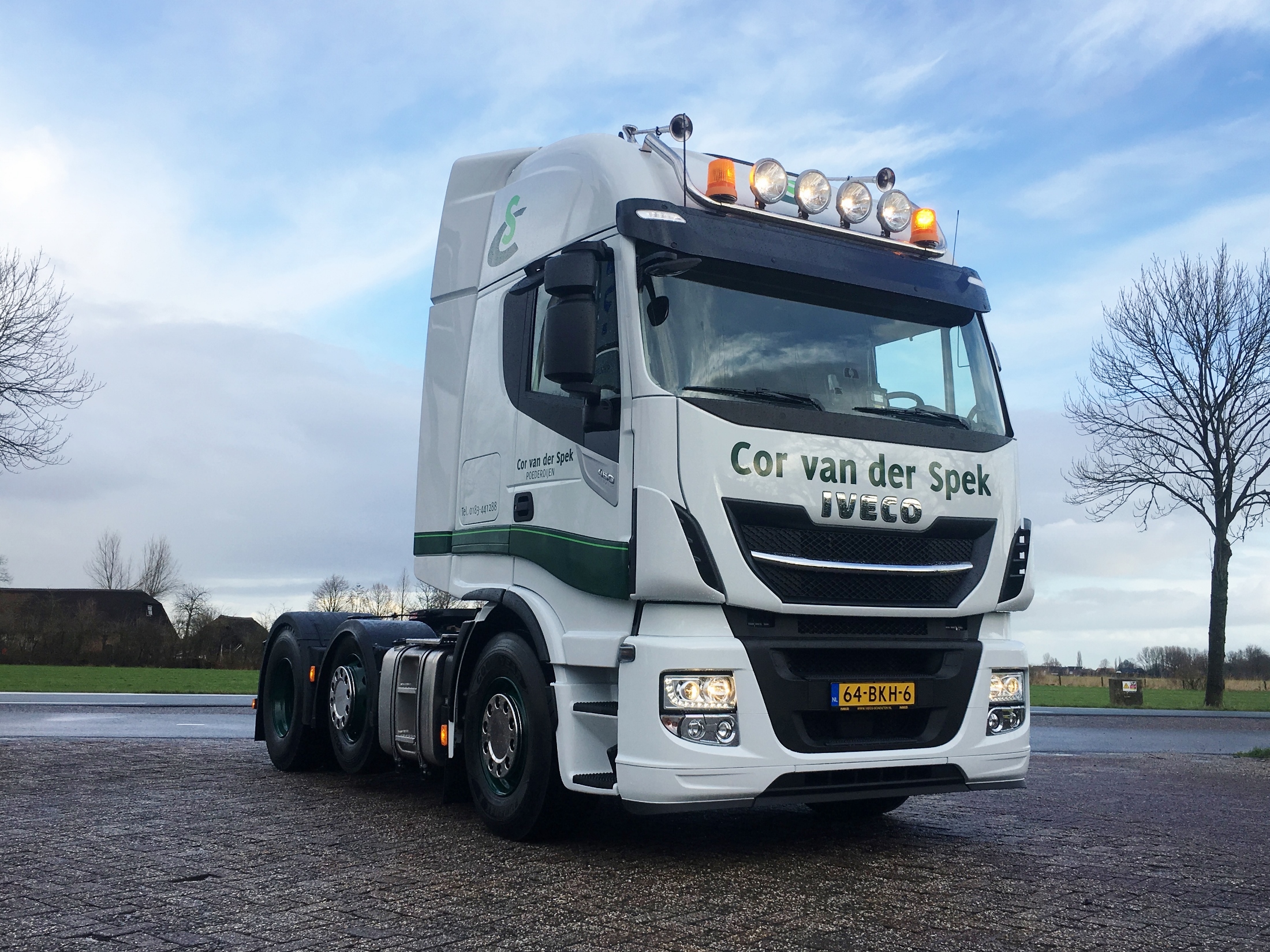 Het wagenpark van Cor van der Spek bevat al verschillende Iveco Stralis trekkers. Ook heeft de onderneming nog de beschikking over een Magirus-Deutz uit 1986 met drie-zijdige kipperopbouw.