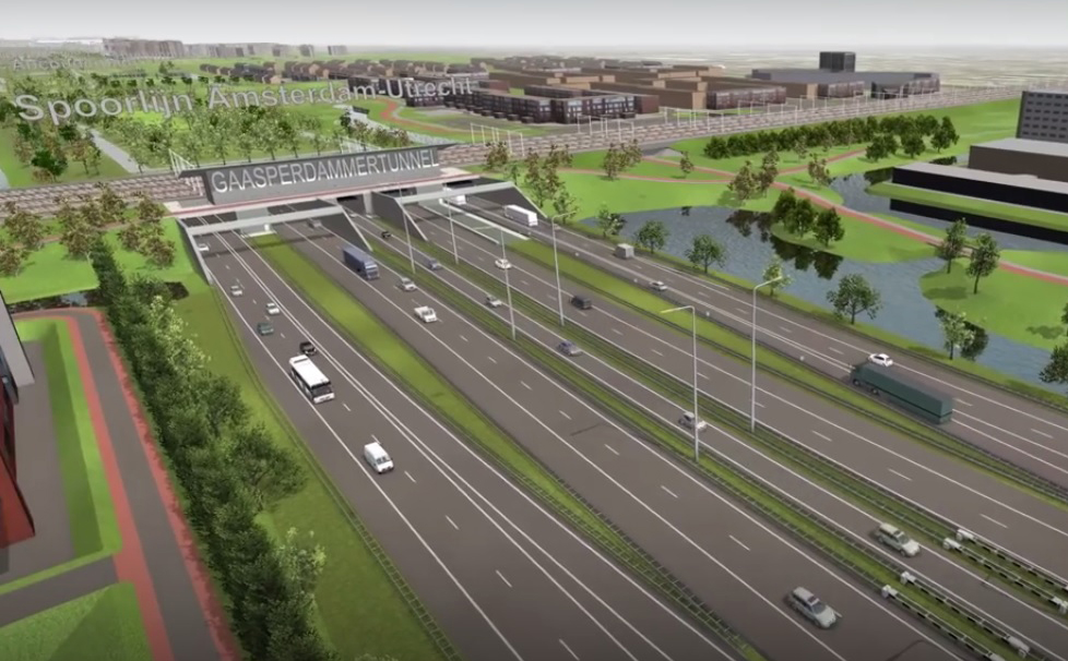 De A9 Gaasperdammerweg wordt flink aangepakt, zoals goed te zien is op bovenstaande video. De weg krijgt twee keer vijf rijstroken en een wisselstrook. Nu heeft de weg slechts twee keer twee rijstroken en aan weerszijden spitsstroken. Die spitsstroken werden enkele jaren geleden aangelegd als tijdelijke maatregel om het verkeer een klein beetje lucht te geven.