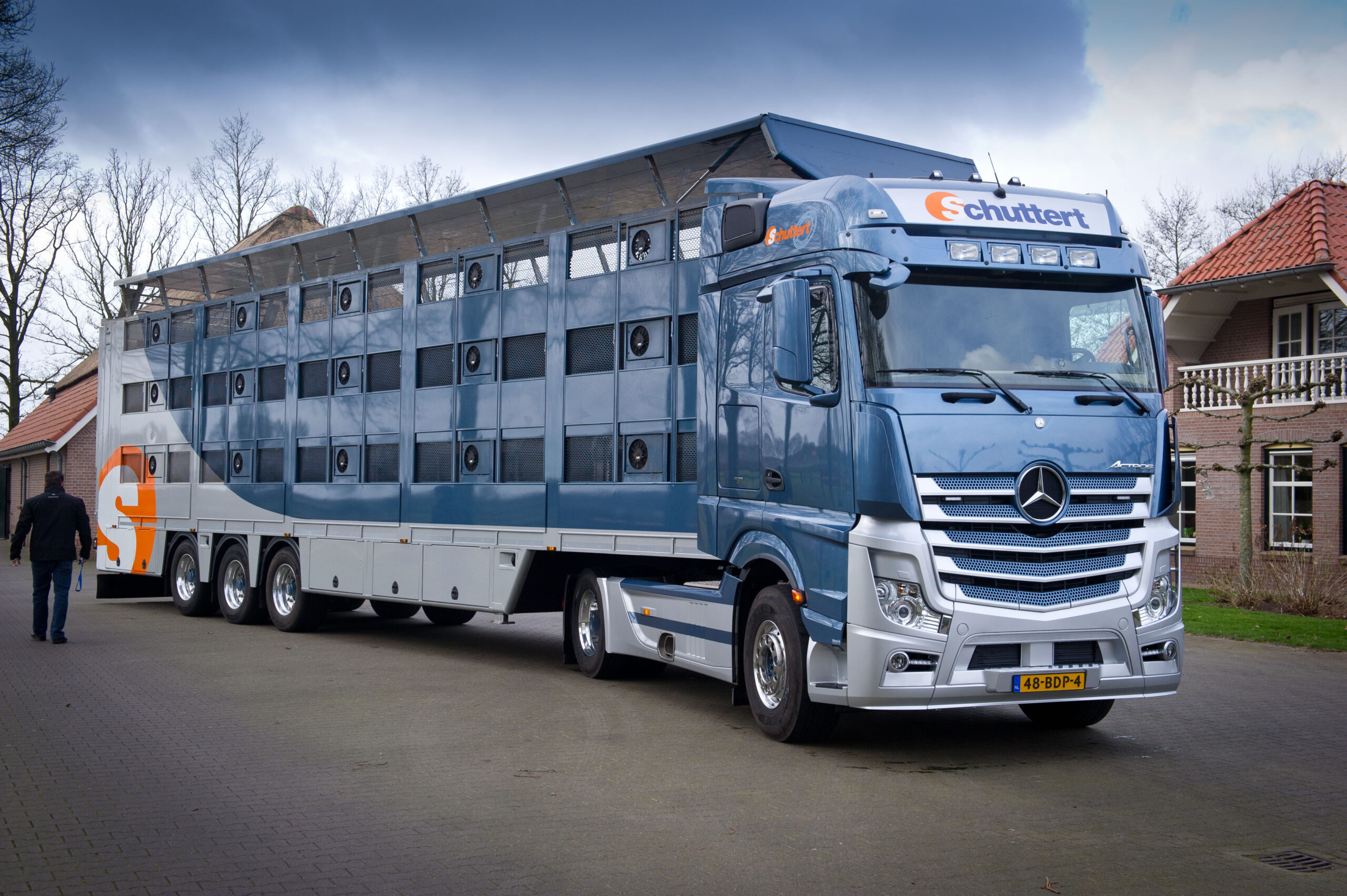 Schuttert verhandelt biggen en varkens volgens een moderne, geautomatiseerde bedrijfsvoering. Het bedrijf heeft niet alleen het transport van de dieren, maar ook een deel van de productieketen in eigen handen. De nieuwe Actros wordt dan ook ingezet met een speciale trailer voor het transport van varkens naar slachterijen in Nederland en Duitsland. Handelshuis Schuttert verwacht hiermee zo’n 120.000 kilometer per jaar af te leggen.