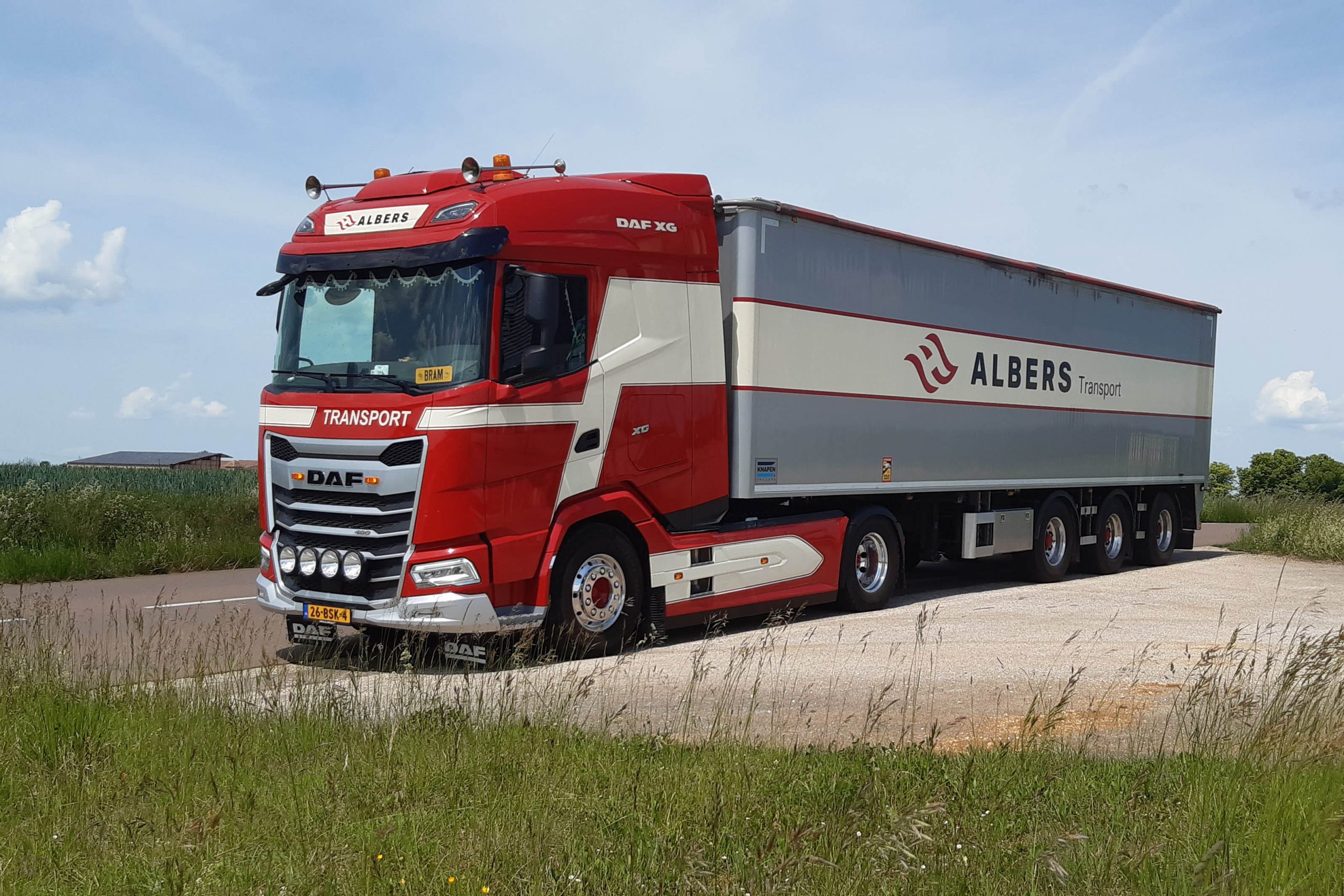 “40 jaar geleden hadden we al onze eerste DAF”, zegt Martijn Albers. “Nu hebben we sinds lange tijd weer eens hagelnieuwe exemplaren aangeschaft ter vervanging van enkele oudere trekkers. Dat is dan best nog spannend. Met een van de grond af aan nieuw ontwikkelde truck kun je kinderziektes verwachten. DAF heeft echter duidelijk veel testwerk verricht want de XG’s rijden probleemloos.”
