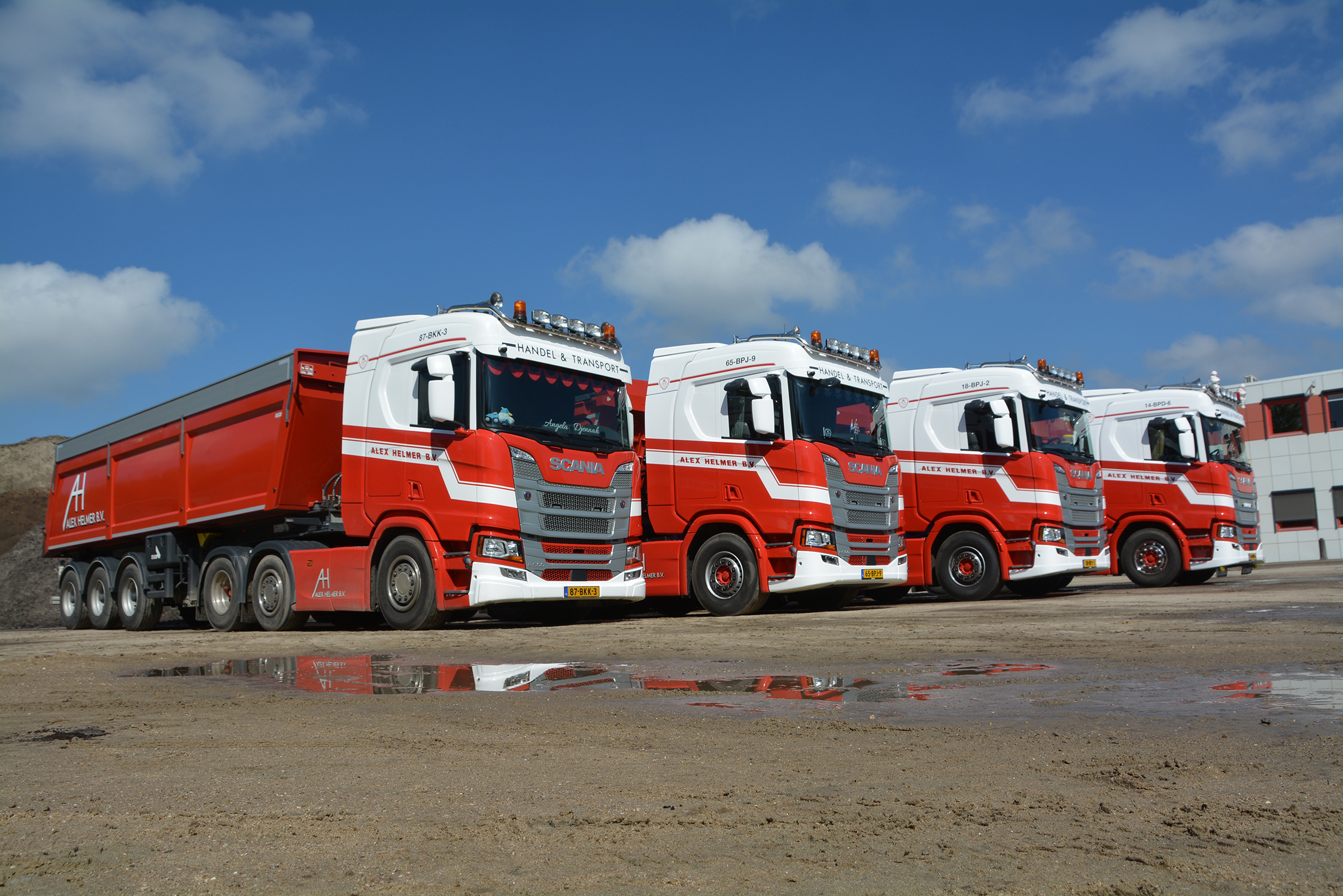 Het resultaat is dat er sinds deze zomer drie stuks drieassige trekkers, een 8×4*4 en een 10×4*6 kipper in de bekende rood-witte kleuren rondrijden. Directeur Alex Helmer: “Ook deze bevielen zo goed dat we in januari alweer de zevende Scania afgeleverd krijgen.”