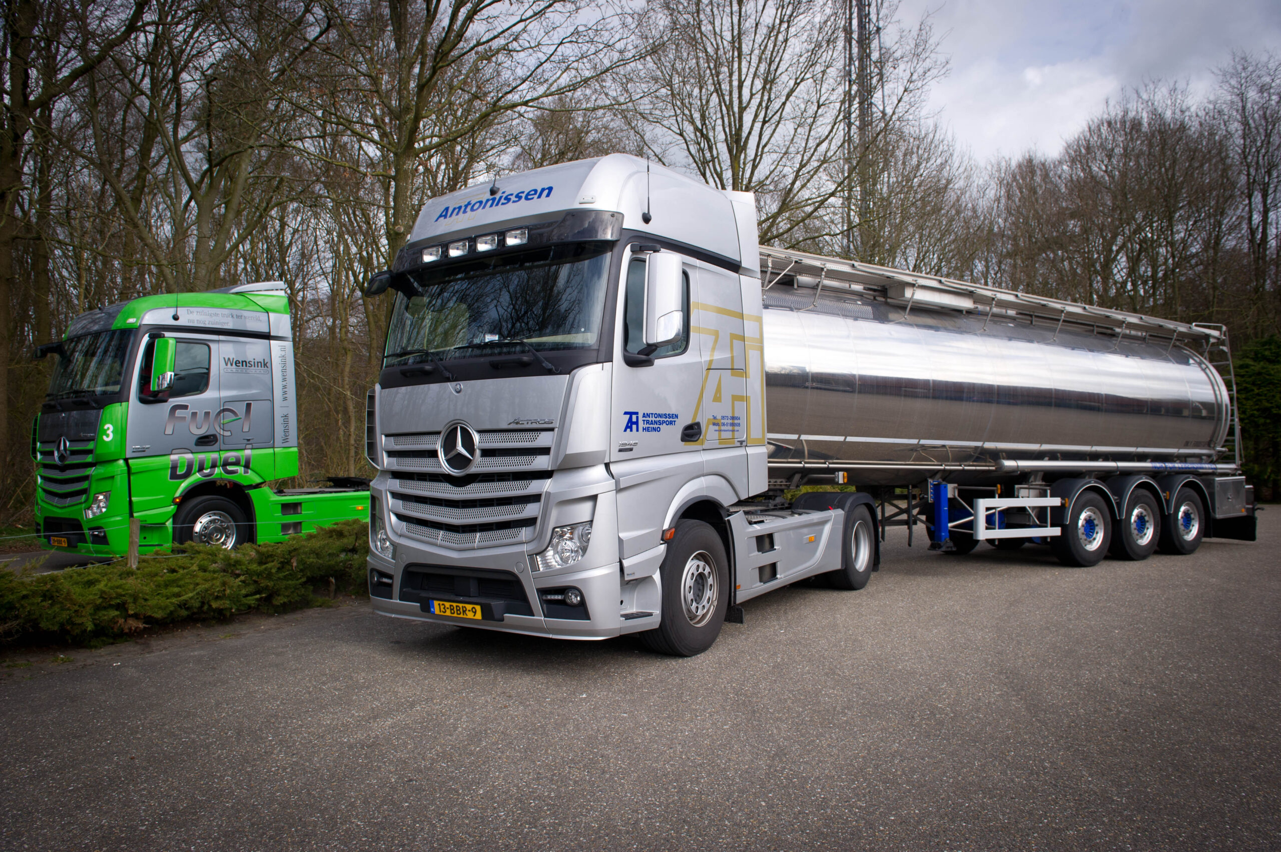Antonissen Transport uit Heino nam vorig jaar een Mercedes-Benz Actros 1845 LS GigaSpace in gebruik voor het transport van vloeibaar voedsel. De transporteur heeft positieve ervaringen opgedaan met het brandstofverbruik van de vrachtwagen over de eerste 100.000 kilometer. Met een gemiddeld verbruik van 1 op 3,8 is de Mercedes-Benz truck zo’n 15% zuiniger dan de andere trucks uit het wagenpark en dat wel met een vergelijkbare inzet, meldt een persbericht van Mercedes-Benz Nederland.
