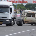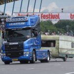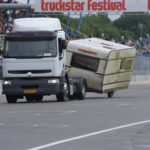 Vind je het heerlijk om op de tribune naar spectaculaire shows te kijken? Dan ben je op het Truckstar Festival aan het juiste adres! Ook dit jaar is er weer een afwisselend baanprogramma dat inmiddels in volle gang is! Zo gaven de racetrucks vanochtend bij aanvang acte de presence en werden rond de klok van elf uur weer heel wat caravans platgelegd. Indian Pete – je weet wel, die Indiaan met die dikke Amerikaanse truck – liet zijn bijzonder uitgedoste Kenworth W900 brullen voor de hoofdtribune en daarna vond de voorronde van de Decibellencontest plaats. Willy Oosterhuis – Loat Goan!! – voorziet ook dit jaar de activiteiten van verrijkend en diepzinnig commentaar en dat staat garant voor veel vertier.