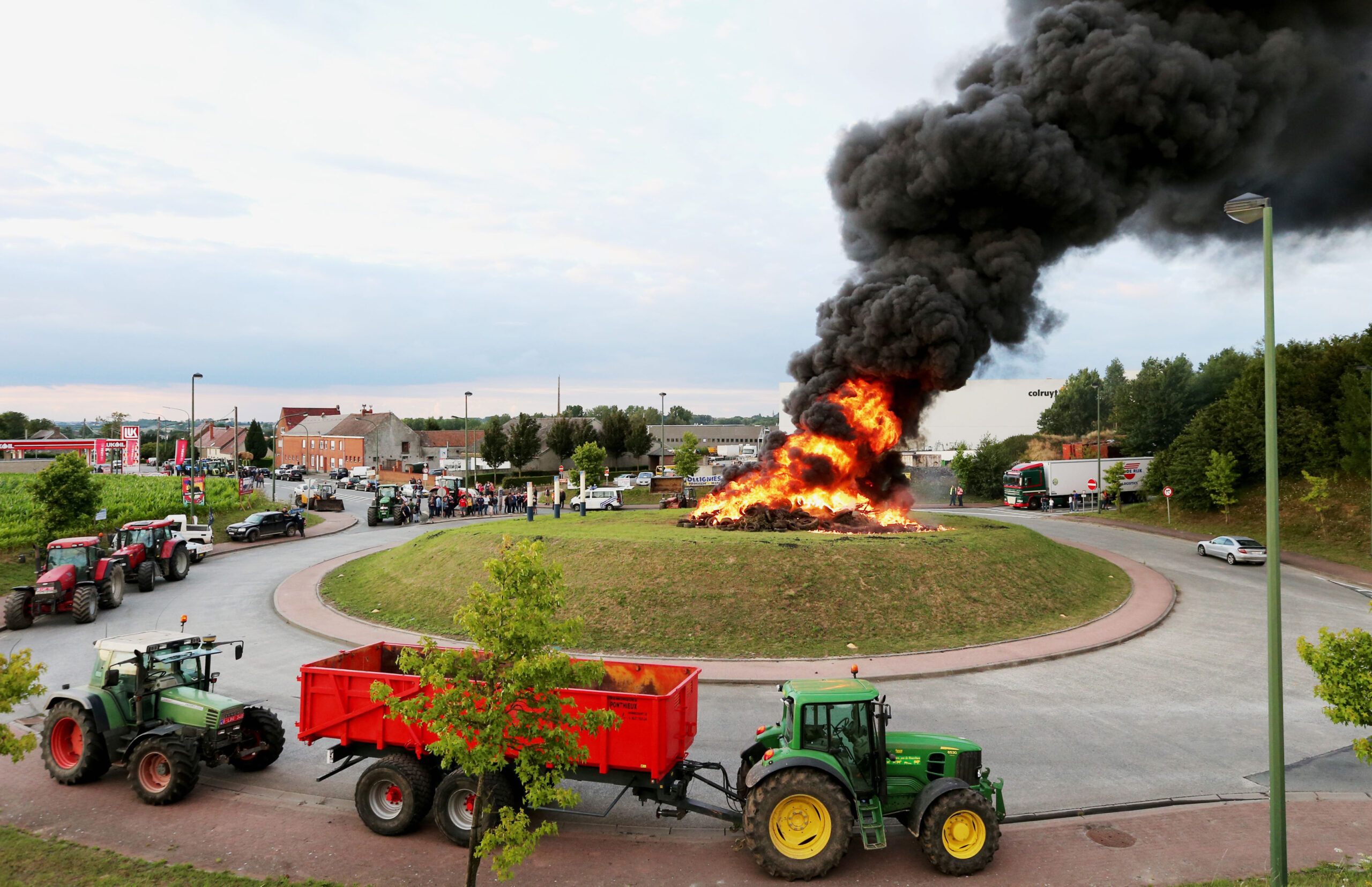 Foto: Boze Belgische boeren voerden deze week actie in Gislenghien/Gellingen, een dorp in Wallonië. (ANP)