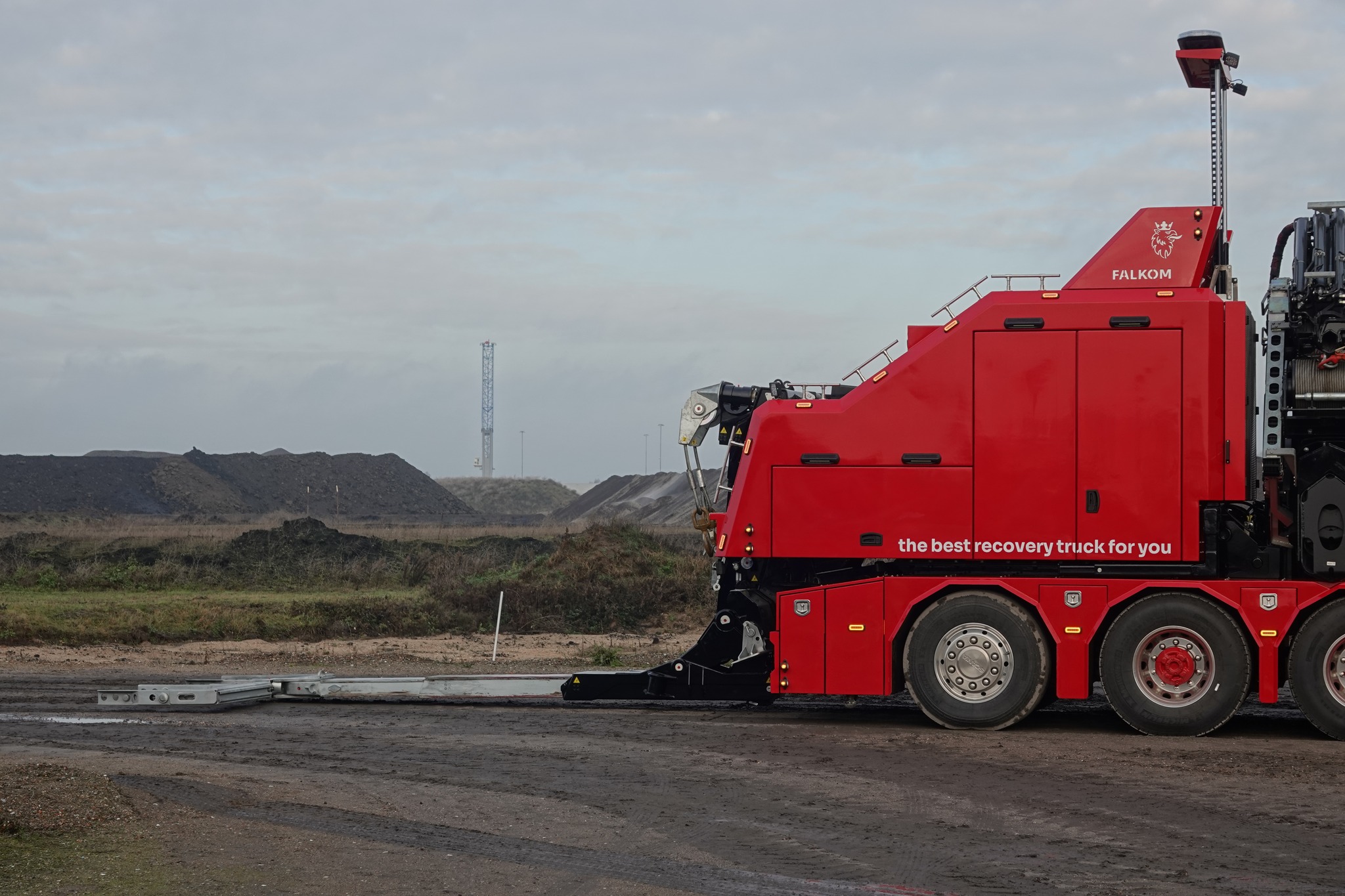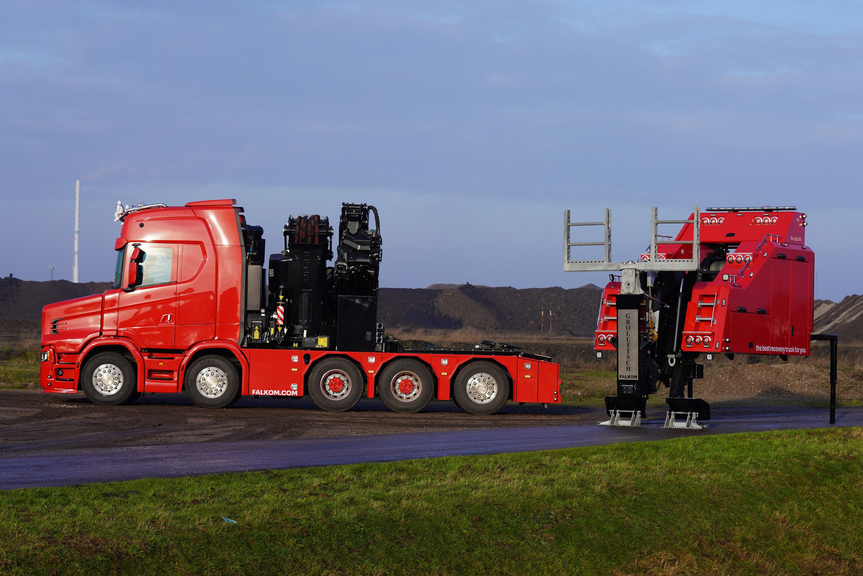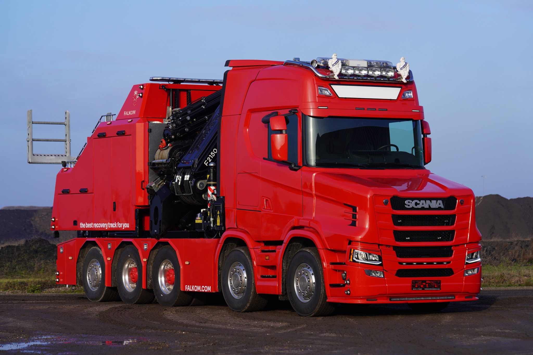 Nadat Vlastuin een torpedotruck van de Scania maakte is de truck in Duitsland voorzien van een extra as. De Fassi F2150, een autolaadkraan met een capaciteit van 160 tonmeter, heeft een bereik van 31 meter. Achter deze kraan is een bergingsopbouw geplaatst, vervaardigd door Falkom in Tiel, met een lepel, een kraanarm en twee lieren. De gehele opbouw is afneembaar, waardoor men een trekker van de bergingstruck kan maken. Deze zou zo ingezet kunnen worden voor het wegslepen van trailers.