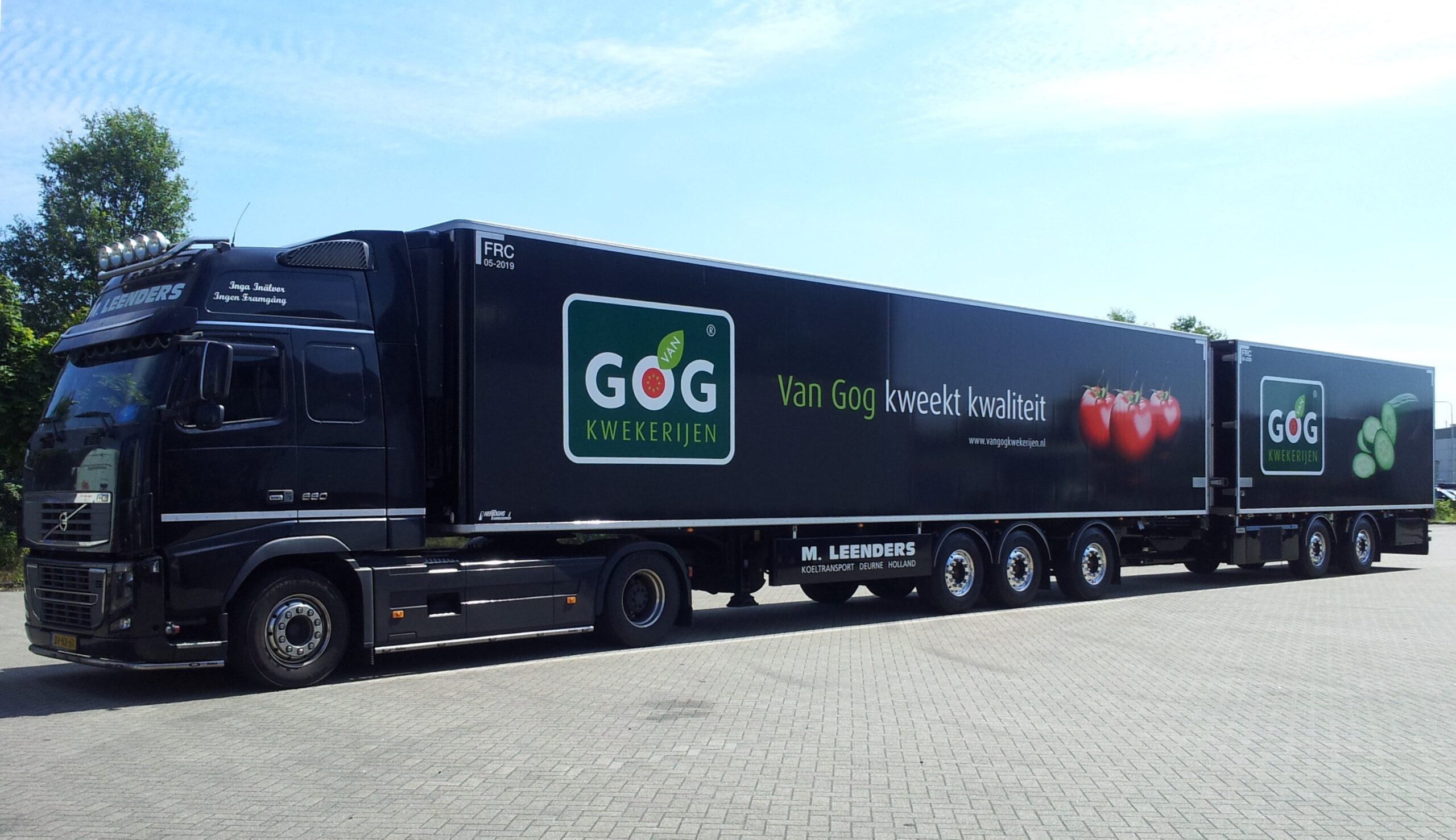 Leenders regelt onder andere zes nachten per week het geconditioneerd vervoer van Van Gog Kwekerijen, eveneens uit Deurne. De gehele combinatie, inclusief de koelmotoren is door M. Verstegen reclame uitgevoerd in de zwarte huisstijl van deze klant.