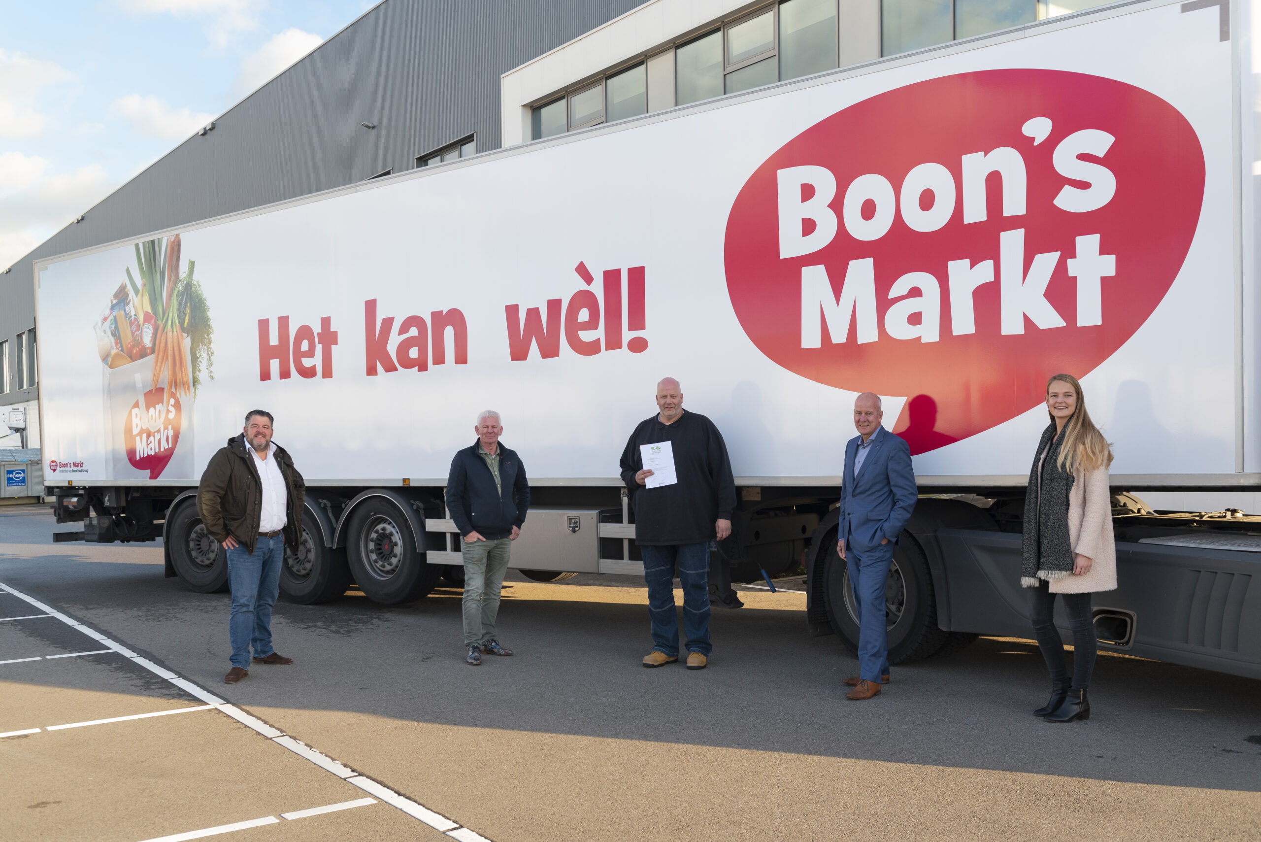 Overhandiging certificaat ‘Duurzaam op de Weg’ door René van Maasakkers van Profile (rechts) aan Johan Kokhuis van Boon Food Group.