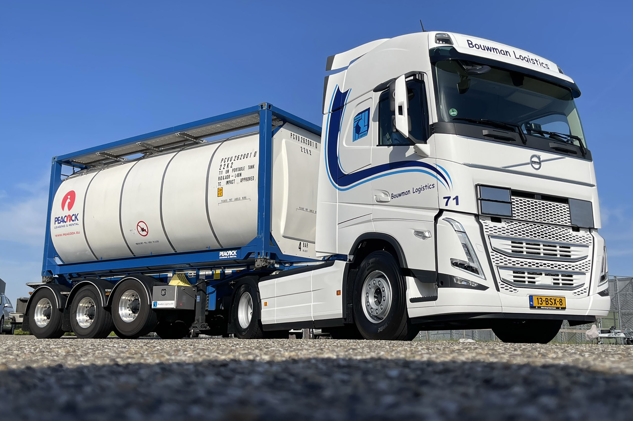 “Wij voeren voor verschillende opdrachtgevers containertransport en tanktransport uit in heel Europa”, zegt eigenaar Romano Bouwman. “Denk onder meer aan grondstoffen voor lakken, plastics, olie additieven en minerale oliën.” Bouwman Logistics heeft voor deze werkzaamheden de afgelopen maanden zeven nieuwe Volvo FH I-Save 460 pk 4×2-trekkers met de Turbo Compound-motor in gebruik genomen.