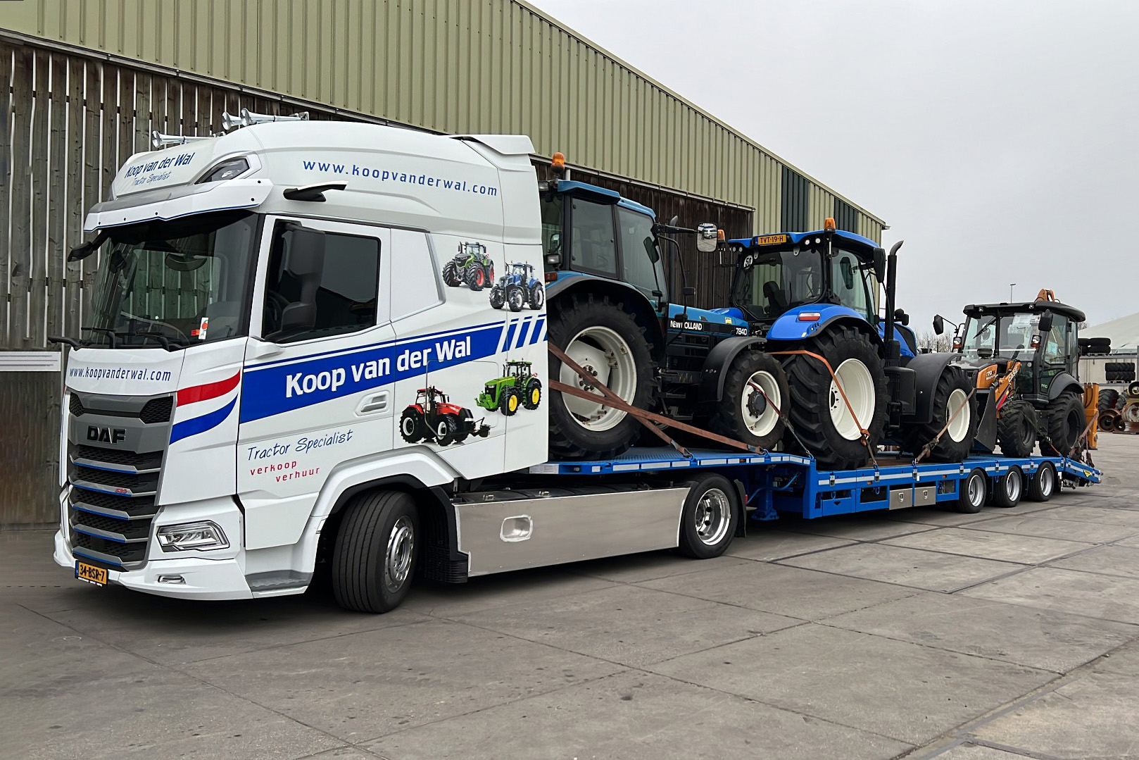 “De gehele combinatie is op elkaar afgestemd zodat de trailer de maximale lengtes kan behouden. De trailer kan hiermee helemaal van voor tot achteraan volgeladen worden. De laatste machine kunnen we met de ECO-oprijklep omhoog drukken en zelfs met iets overstekende lading vervoeren”, aldus eigenaar Willem van der Wal.
