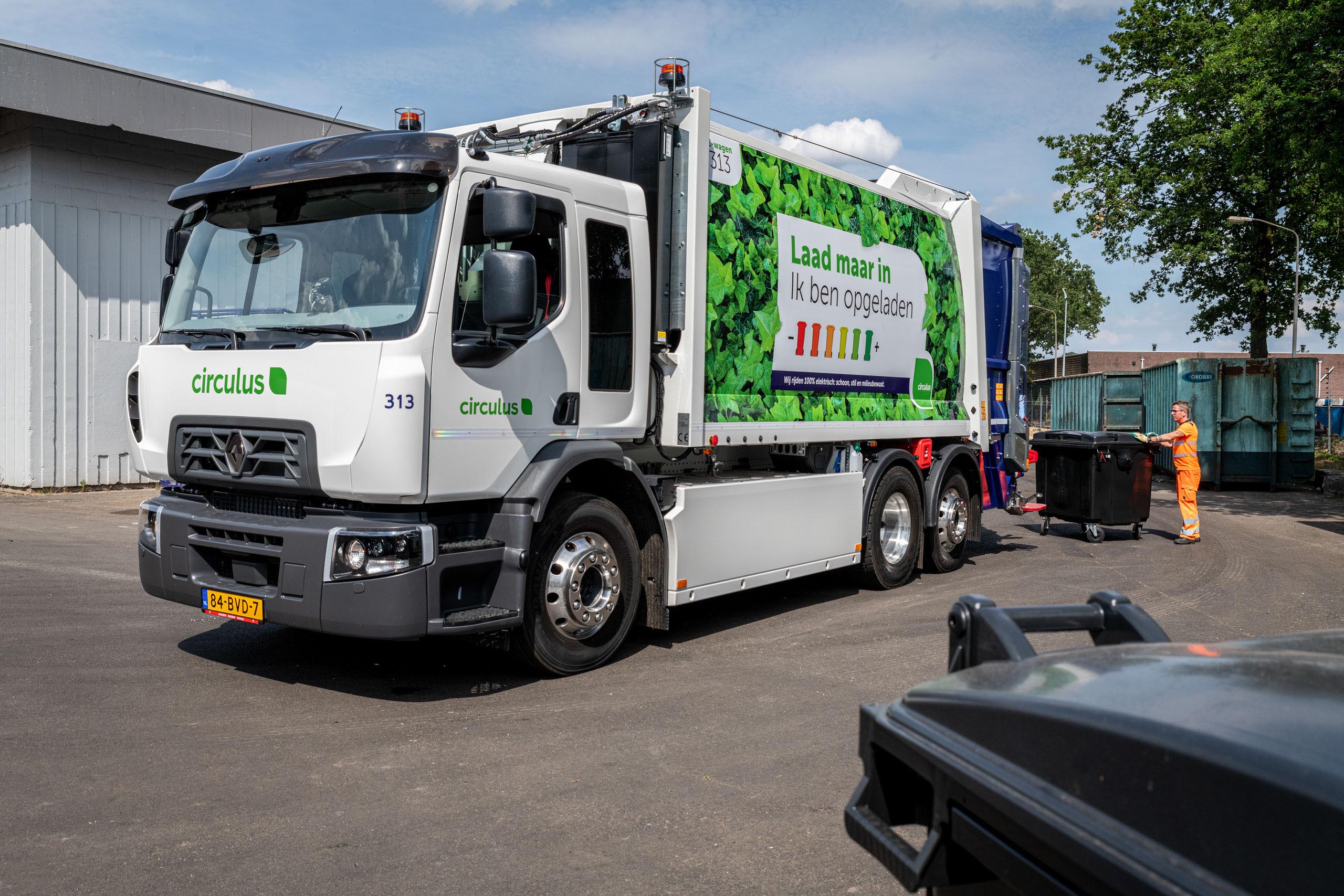 Circulus verzorgt voor negen gemeenten in Gelderland en Overijssel het afval- en grondstoffenbeheer. Het bedrijf werkt de komende jaren toe naar zero-emissie afvalinzameling. Het doel is dat in 2030 ruim 80% van de vloot elektrisch aangedreven is. “Met de Renault Trucks E-Tech D Wide gaan we in eerste instantie vooral afval inzamelen in de regio Apeldoorn”, zegt Fleetmanager Reinier Hoppenbrouwers. “Het betreft de eerste elektrische achterlader. Het voordeel van een dergelijk voertuig is dat deze multifunctioneel inzetbaar is. We kunnen er kliko’s van particulieren mee legen maar ook vierwielige afvalcontainers die bij appartementencomplexen of evenementen staan.”
