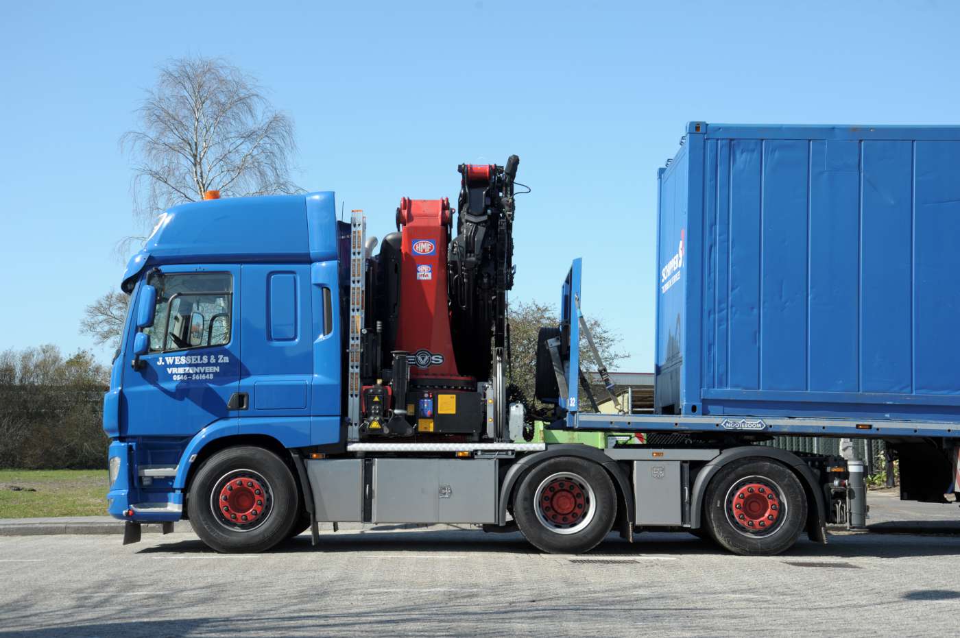 Transportbedrijf J. Wessels & Zn uit Vriezenveen heeft een nieuwe DAF CF450 6×2 trekker met autolaadkraan in gebruik genomen. Een compacte alleskunner, want deze DAF is niet alleen inzetbaar als trekker, maar met een afneembare laadbak ook als motorwagen met aanhangwagen. Het bijzondere is dat het drie-assige DAF-chassis volstaat voor de opbouw van de 70 tonmeter HMF autolaadkraan.