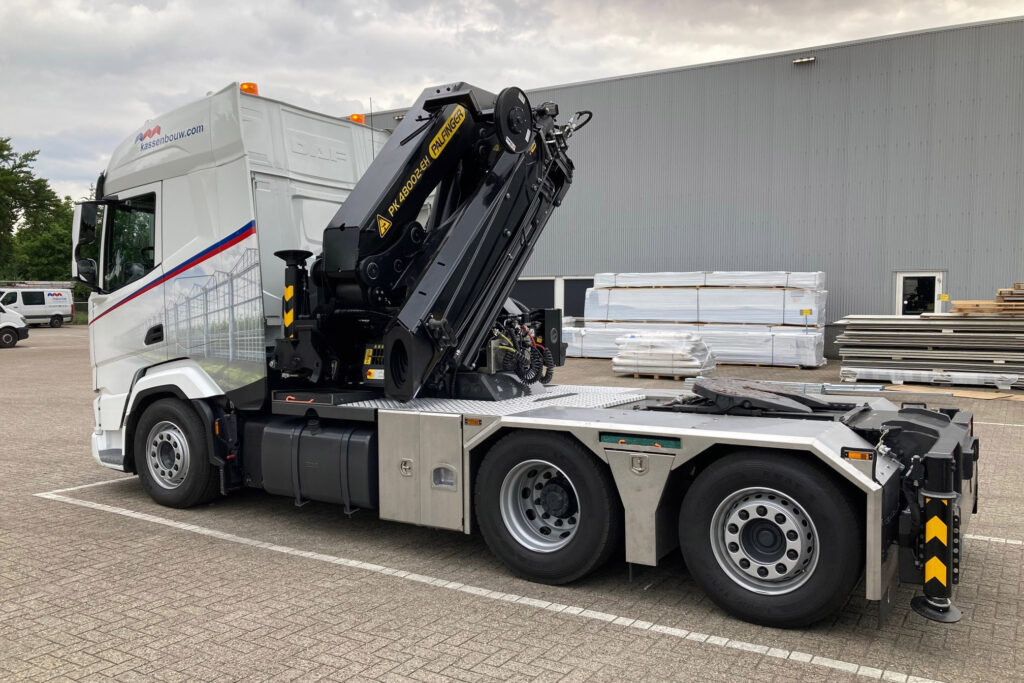 “Een beetje stoere truck wilden we en dat is prima gelukt”, zegt Victor van Haaster, Manager Production & Logistics van het in Horst gevestigde kassenbouwbedrijf. De XF 480 FTN vervangt een lichtere DAF-trekker met kraanopbouw. De nieuwe aanwinst is beter opgewassen voor het transport van zware stalen kasmaterialen. De Palfinger 48.000 EH kan tot aan 16,3 meter reiken met de hydraulisch uitschuifbare giek en heeft een hefvermogen tot aan 1.000 kg. Hiermee lukt het goed om de materialen bij de veelal omvangrijke bouwplaatsen op de plek te krijgen.