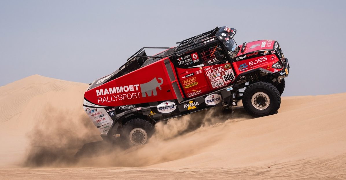Tweede Mammoet-man Janus van Kesteren kwam na 296 kilometer koers als dertiende over de finish en bezet namens Mammoet Rallysport in het algemeen klassement nu de elfde plaats. De Nederlandse Iveco-rijder Ton van Genugten (Team De Rooy) kwam op zijn zij terecht, verloor veel tijd en zakte van de vijfde naar de achtste plaats in het algemeen klassement. ,,Ik raakte met het linker voorwiel een soort stenen plateau en ging rechts op de kant. In de duinen kun je corrigeren, hier niet.”
