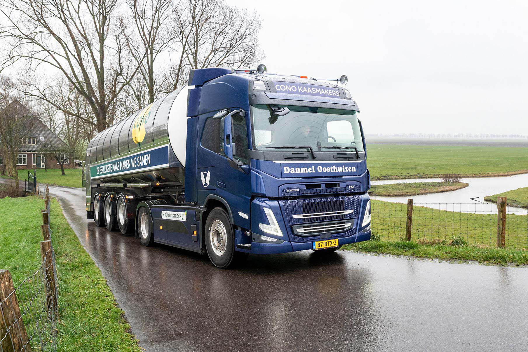 Danmel Transport rijdt voornamelijk in opdracht van CONO Kaasmakers. “Wij vervoeren melk van de boer naar de kaasmakerij in Westbeemster”, zegt Mart de Waard, eigenaar van Danmel Transport. Boerencoöperatie CONO Kaasmakers zet sterk in op duurzaamheid en wil samen met haar melk- en kaastransporteurs de footprint van kaas verkleinen. De ambitie: een klimaatpositieve kaasketen in 2030. Dat betekent dat er meer CO2 uit de lucht wordt gehaald en vastgelegd dan dat er wordt uitgestoten. Daarbij is een belangrijke rol weggelegd voor transporteurs.