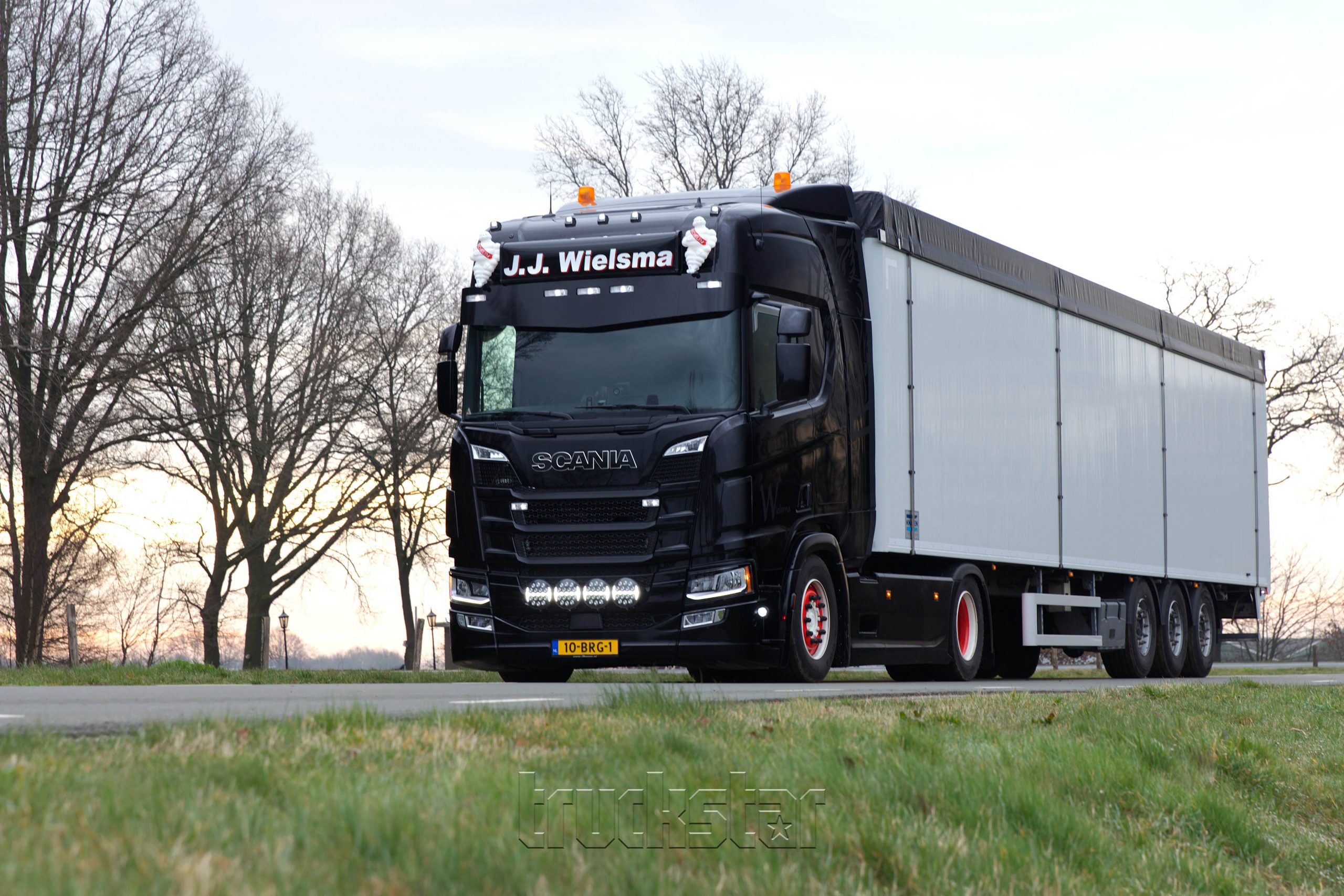 De eerste maanden heeft Jan een Scania geleast van leverancier Rinsma Scania uit Drachten. Hij wilde, net zoals zijn vader, een trekker met een laag chassis en een koppelschotelhoogte van 1,05 meter, zodat hij dezelfde volumetrailer kan aankoppelen als zijn vader. Tweedehands zijn deze trekkers, met hydrauliek, echter bijna niet te vinden, dus besloot hij in samenspraak met de boekhouder – en met een beetje begeleiding van zijn vader – om te investeren in een nieuwe R500. Eind februari was de truck klaar en een kleine maand later, ging de teller over de eerste 10.000 kilometer.