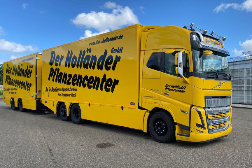 Op de zwaarste Volvo FH750 truck uitvoering heeft Heiwo een carrosserie geplaatst net 8.1 m lengte en 2.8 m inwendige hoogte, de achterdeuren zijn in harmonica uitvoering t.b.v. het doorladen. Heiwo monteert zelf de 50 mm pneumatische volume koppeling voor de middenas aanhangwagen. Voor het solo laden en/of lossen is er een D’hollandia volume laadklep gemonteerd. De carrosserie wordt op temperatuur gehouden door een Webasto warmwater kachel gemonteerd in een roestvrij stalen kist. In de vloer zijn 4 uitblaas openingen en de kokers hiervoor lopen door het hulpraam heen.