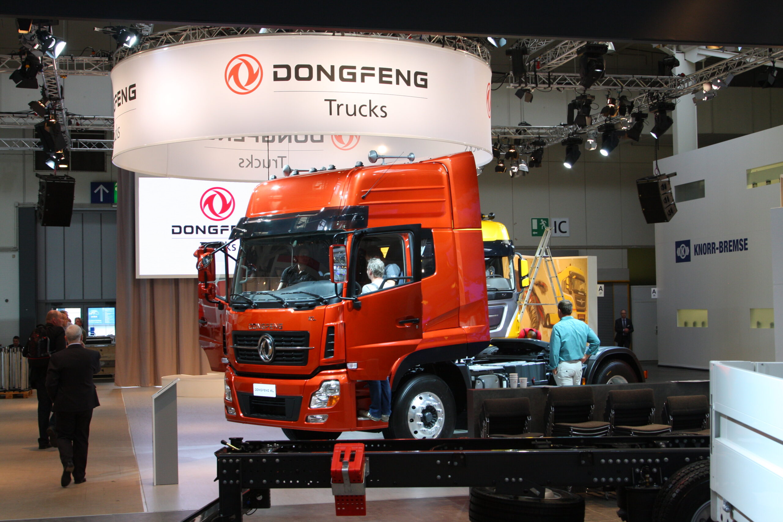 Dongfeng presenteerde op een bescheiden stand enkele trucks op de IAA 2014 in Hannover, waaronder dit midden-model, de KL. Daar trok Dongfeng de nodige belangstelling mee.