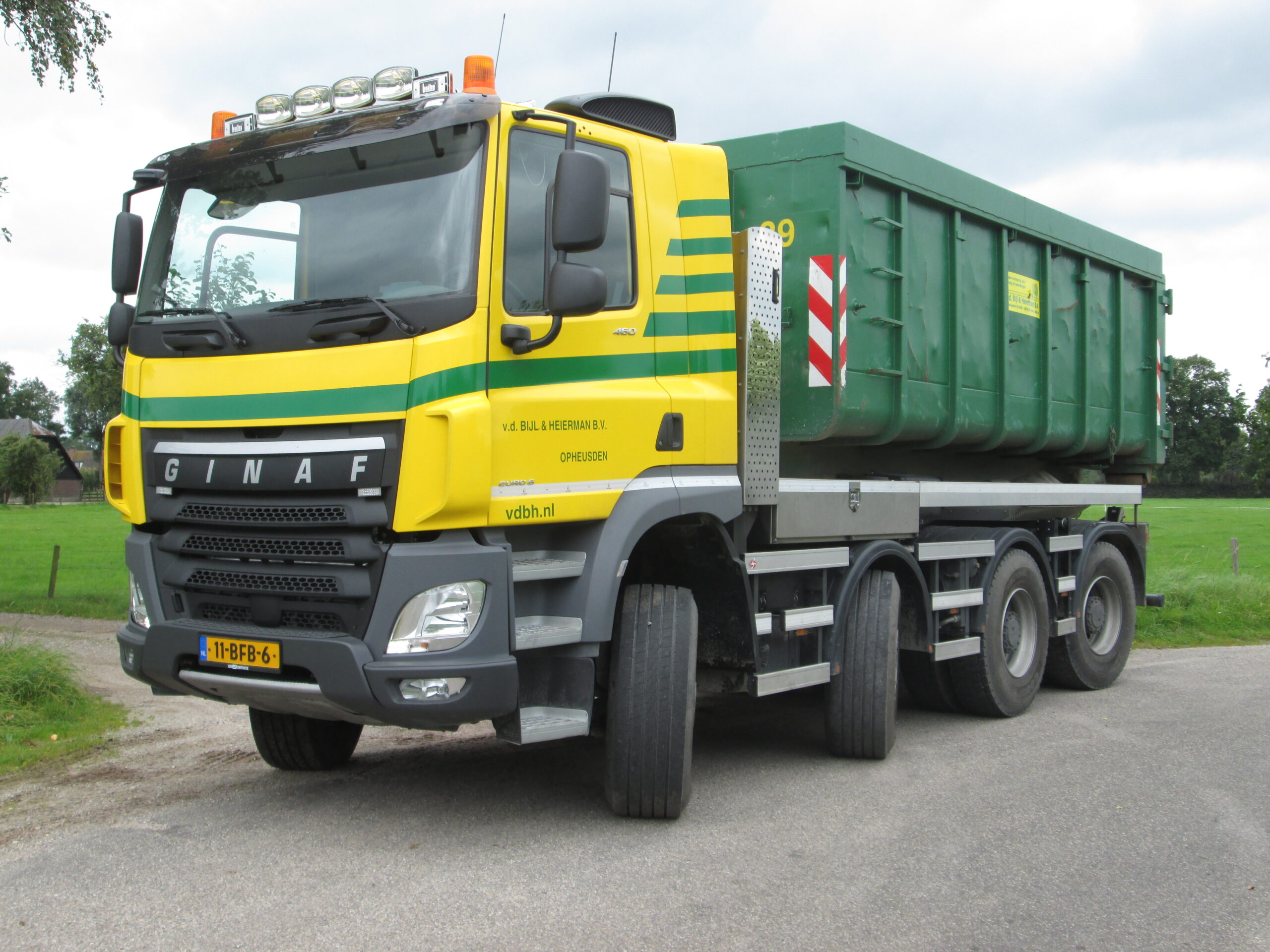 Van de Bijl en Heieman uit Opheusden nam onlangs de allereerste Ginaf Euro 6 in gebruik. Ginaf Service uit Ederveen leverde de truck. Deze Ginaf 8×4 is uitgerust met een DAF MX13 motor en een ZF AS-Tronic versnellingsbak. Het voertuig heeft een GVW van 43 ton. Door de korte wielbasis en de drie sturende assen is de Ginaf erg wendbaar.