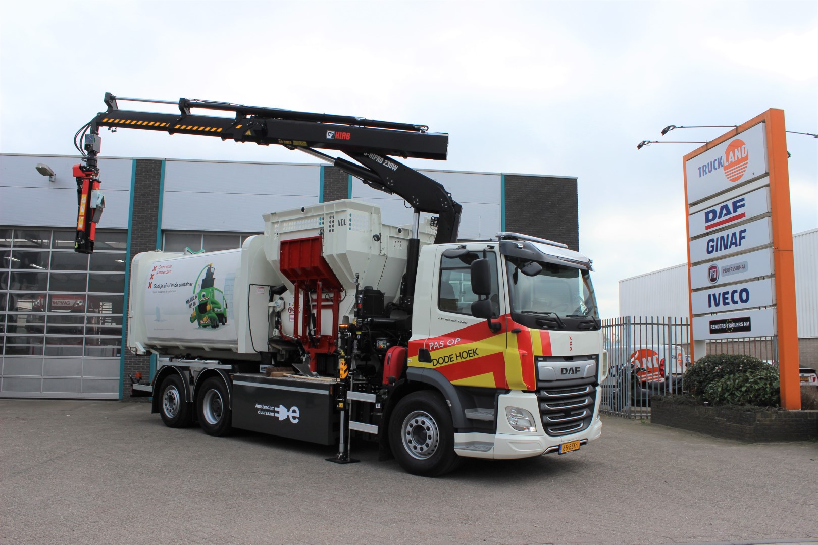 Namens Truckland overhandigde Harry Elling, Aftersales Directeur van de Truckland Group, de sleutels van de nieuwe DAF CF Electric. “De DAF CF Electric is een innovatieve truck. De vrachtwagen is het resultaat van een nauwe samenwerking tussen DAF Trucks en VDL Groep. De twee ondernemingen tonen zo hun intensieve samenwerking op het gebied van elektrificatie van bedrijfswagens. De DAF CF FAN heeft een range tot 220km, waardoor dit voertuig probleemloos kan worden ingezet voor huisvuilinzameling in de stad.”
