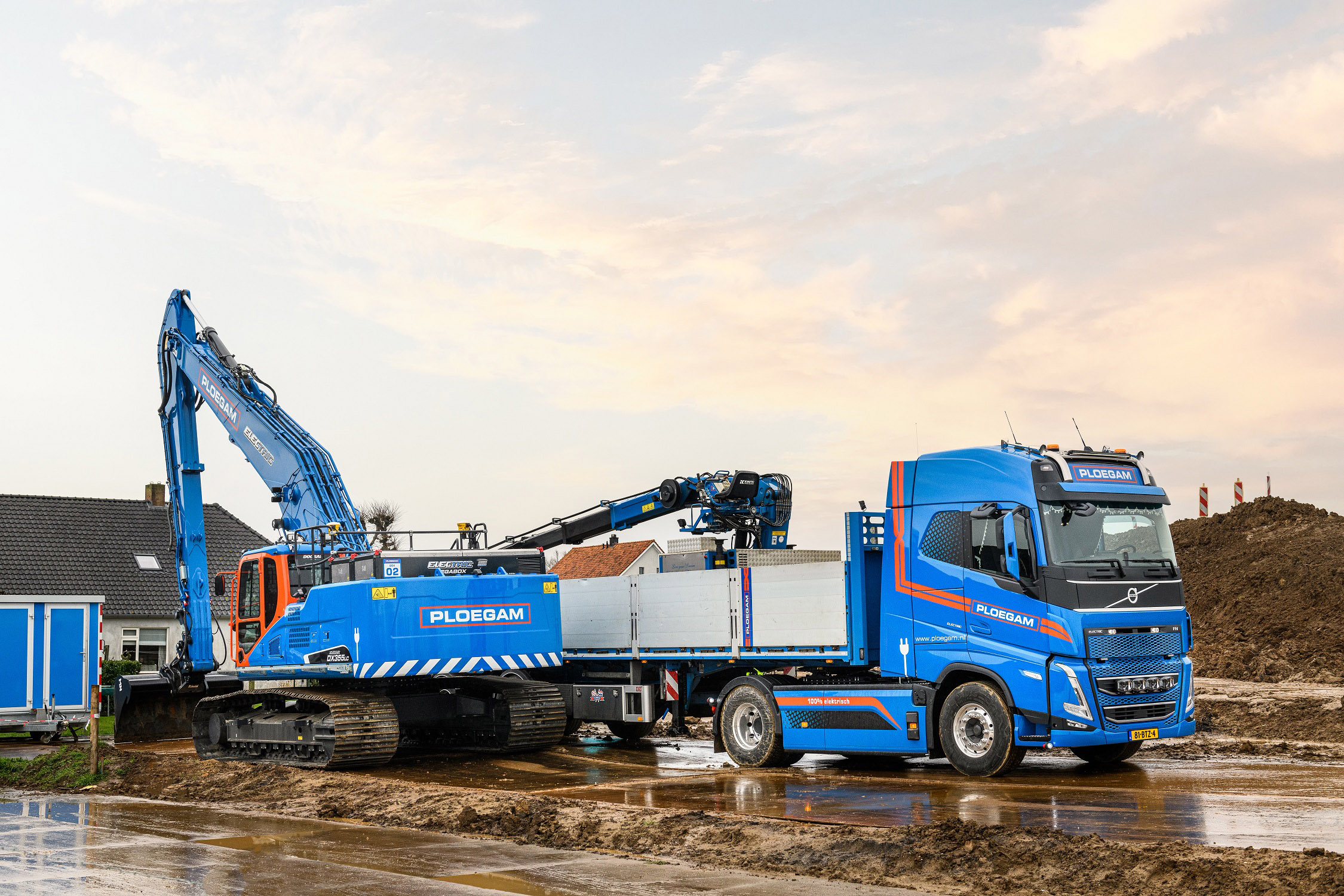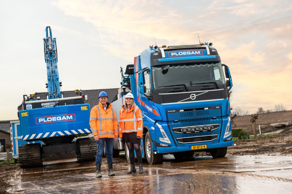 Chris Ploegmakers, algemeen directeur Ploegam, en Ilvy Ploegmakers, commercieel directeur Ploegam, vertellen hoe twee Volvo FH Electric trekkers en elf FH 8×4 tridem kippers een belangrijke bijdrage leveren in onder andere het grote project Dijkversterking Tiel-Waardenburg dat zij vorig jaar binnenhaalden. BAS Truck Center leverde onlangs de eerste Volvo FH Electric 4×2 trekker. En er zitten nog één Volvo FH Electric 4×2 trekker en elf Volvo FH Electric 8×4 bakwagens in de pijplijn.