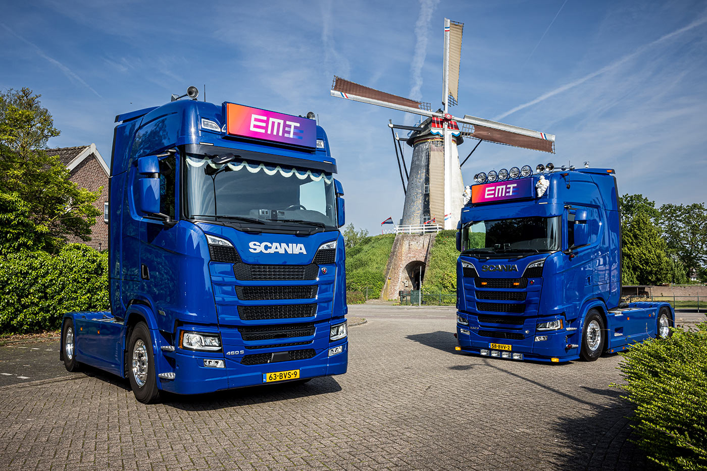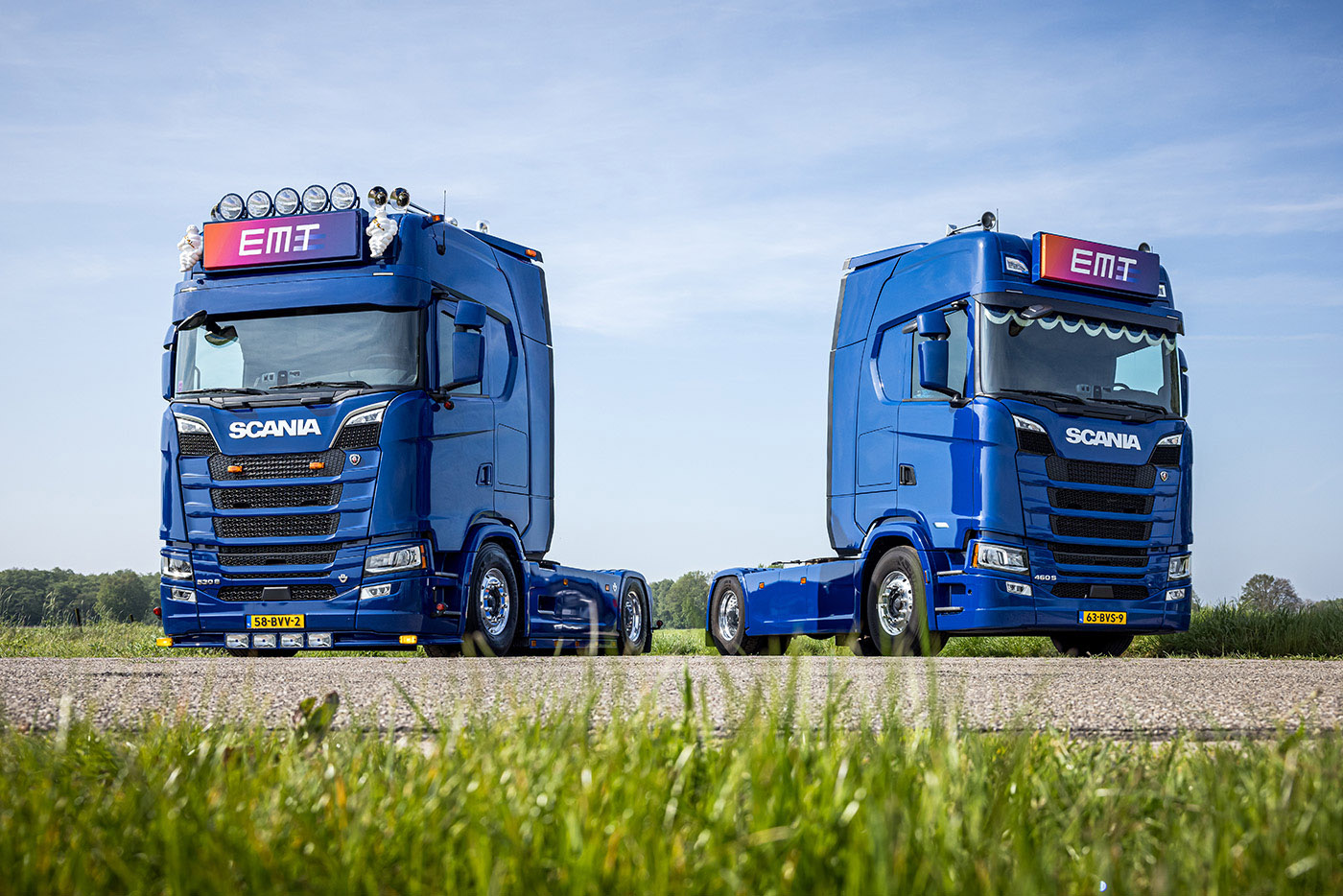 EMT uit Heeze nam twee nieuwe Scania trekkers in gebruik waarvan één rondom luchtgeveerde 530S als 4×2 V8. De andere is een 460S Super 4×2 met eveneens een hoge cabine en de kenmerkende vlakke vloer. Daarmee is het bedrijf dat nu twee jaar bestaat, gegroeid tot 17 trekkende voertuigen.
