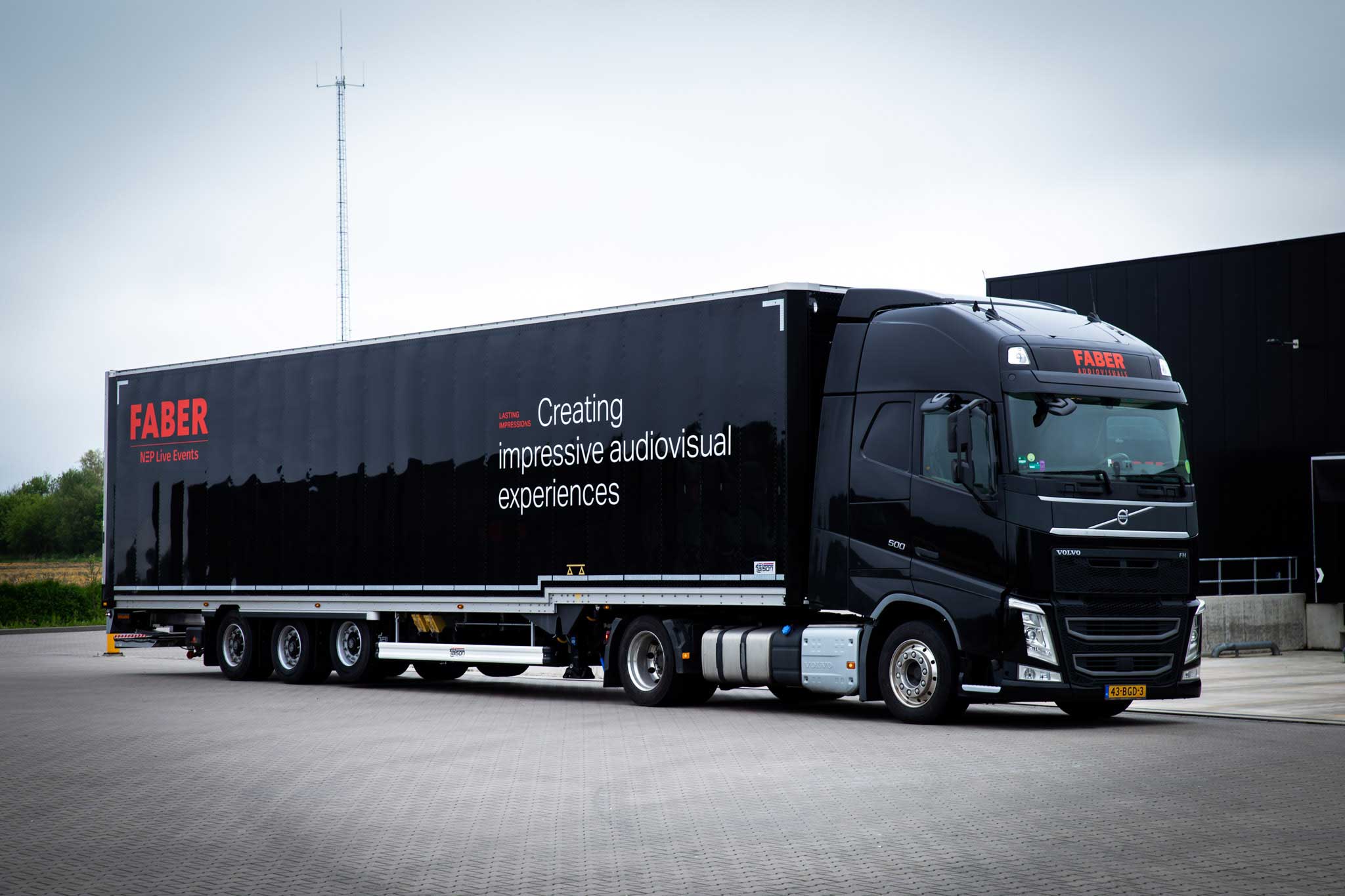 Faber uit Sint-Annaparochie levert audio- en videodiensten op evenementen in heel Europa. Voortaan wordt het transport uitgevoerd met vijf op maat gemaakte Talson megatrailers.