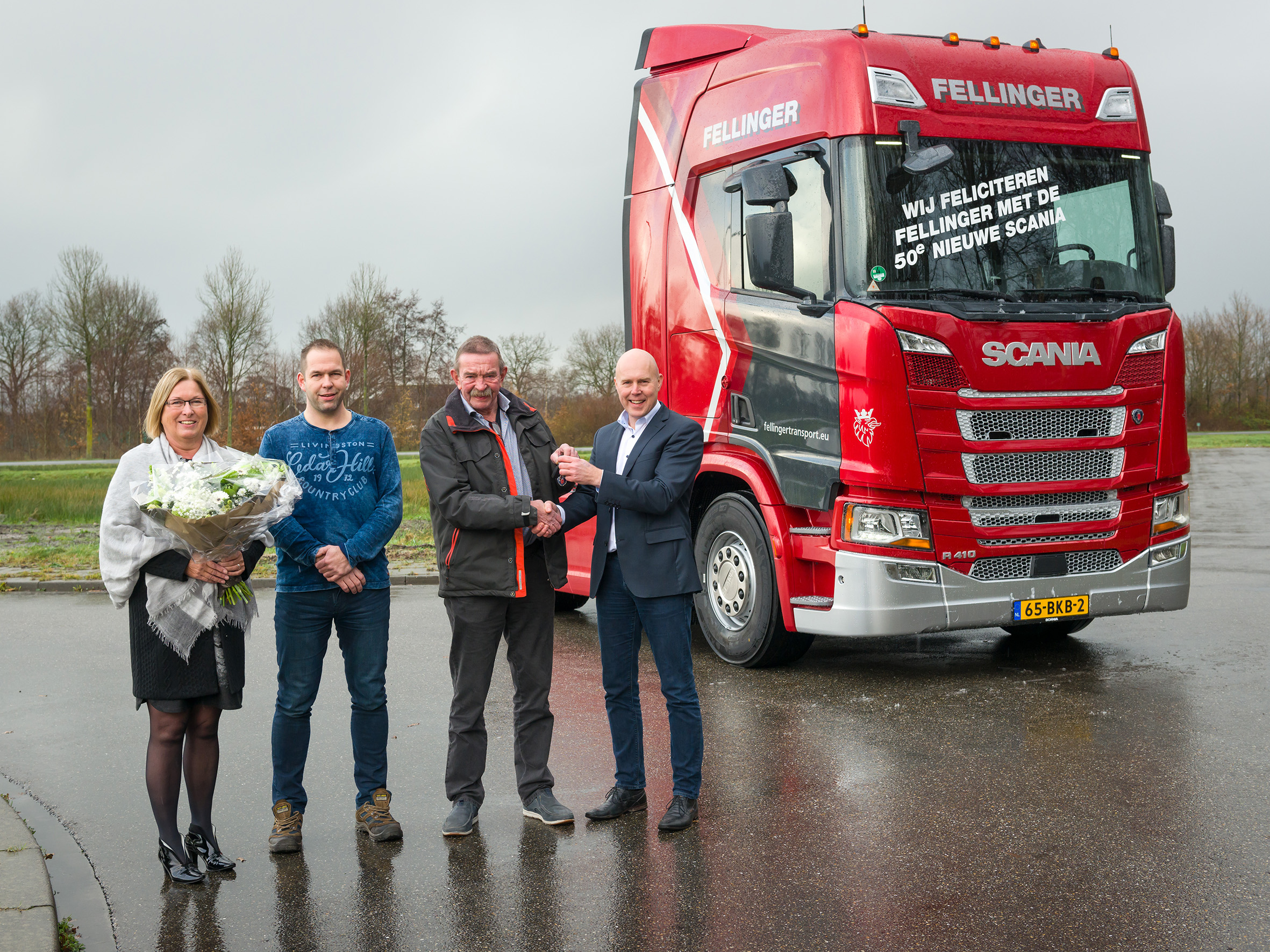 Transportbedrijf Fellinger heeft haar vierde New Generation Scania in ontvangst genomen. De luchtgeveerde 4×2 met 410 pk SCR-only motor is de vijftigste Scania die het bedrijf sinds de oprichting heeft gekocht.
