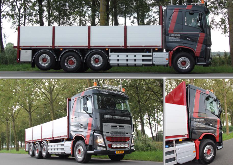 Het gaat om een FH500 8×2 motorwagen, waarvan de middelste as van het tridemstel de aangedreven as is, en de andere twee enkelluchts en hefbaar zijn. De vooras is goed voor tien ton en dat resulteert in een GVW van maar liefst 37 ton.