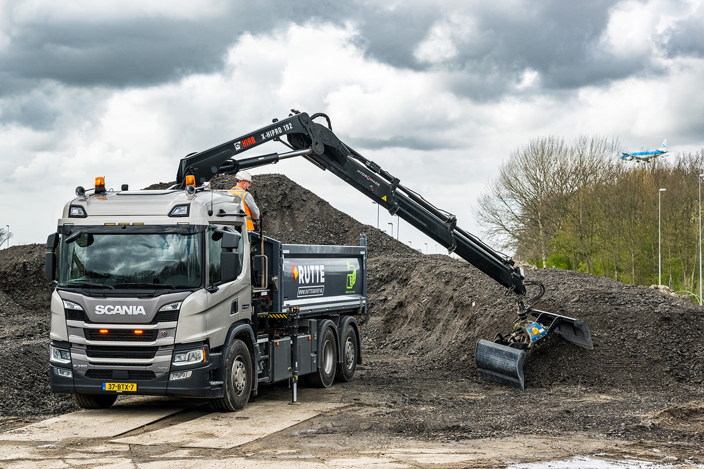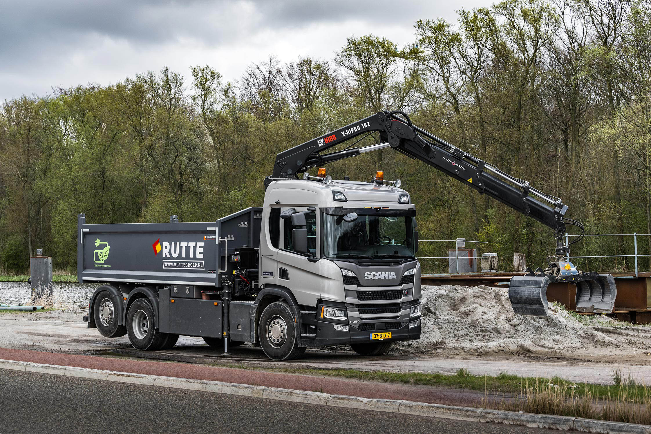 De Scania P-serie met hybride aandrijving en voorzien van elektrisch aangedreven HIAB-autolaadkraan wordt ingezet voor het vervoeren van wegenbouwmaterialen van en naar diverse steden. “Het rijden, laden en lossen in binnenstedelijke gebieden moet steeds vaker emissievrij,” zegt Kees Salentijn. “Dit is een prachtig concept waarmee we kunnen schakelen tussen de verbrandingsmotor en elektrisch rijden wanneer dat nodig is.”