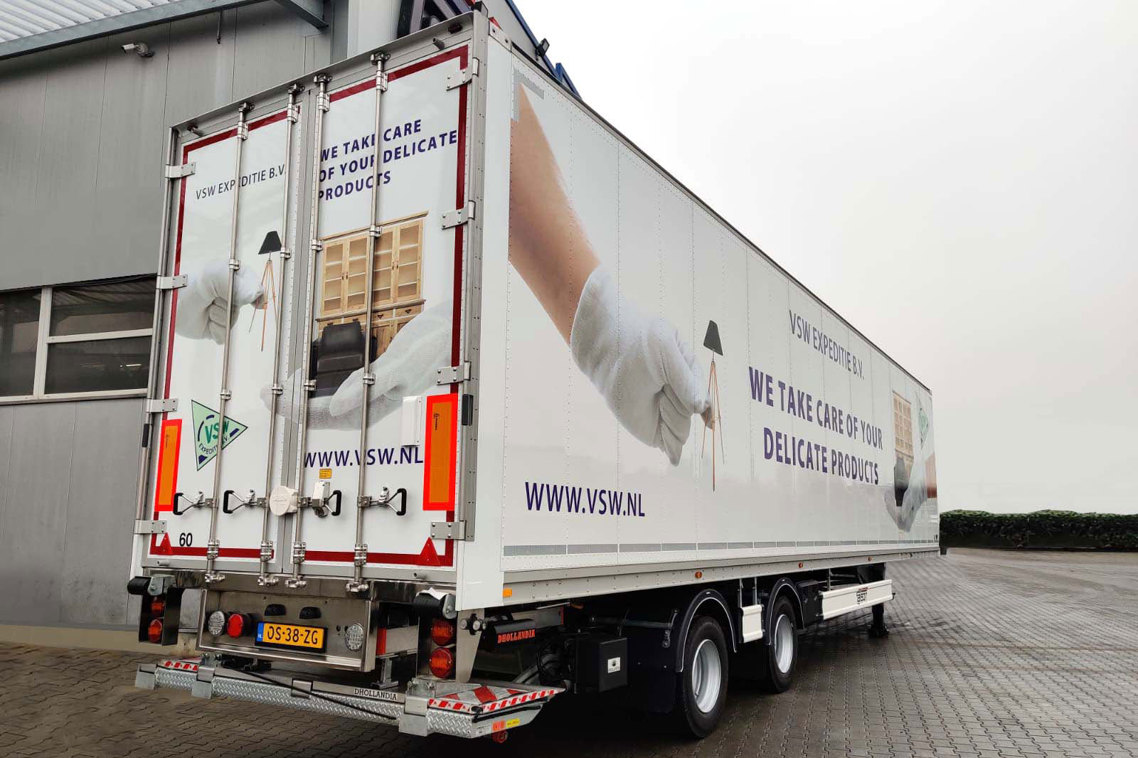 De opleggers zijn op verzoek van VSW uitgerust met een hardhouten vloer. Deze is door VSW in de wax gezet waardoor een perfect vlakke, gladde vloer ontstaat. Zo kunnen de kwetsbare ladingen schadevrij worden gemanoevreerd. Met behulp van speciale banden die aan het Talfix-systeem gefixeerd worden, borgen de chauffeurs de meubelen aan de zijwanden.