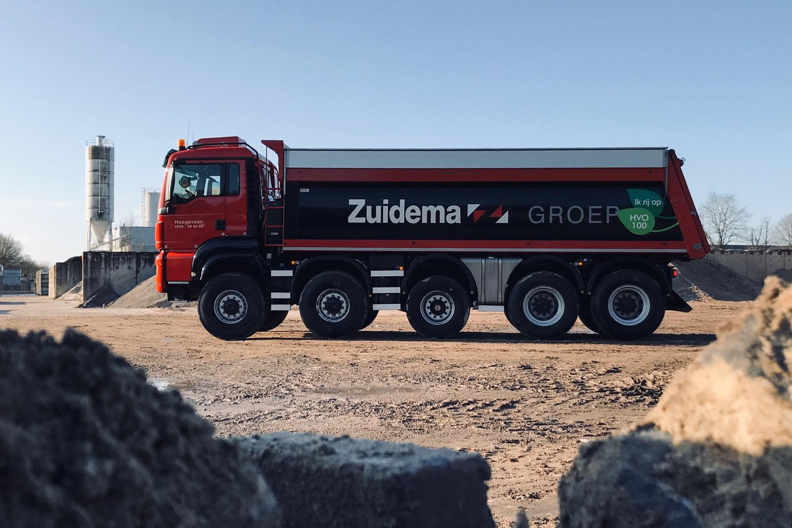 Dat vindt ook Harrold J. Dusseljee van Zuidema Groep. Een deel van de nieuwe vrachtauto’s van het bedrijf uit Hoogeveen rijdt op HVO: “We zijn een mkb-bedrijf. Dan ben je toch wat voorzichtig met flinke investeringen in nieuwe technieken, zoals een rupskraan op waterstof. Wij zijn daarin niet leidend, maar volgend. Als je toch op korte termijn wat wil, is HVO een mooie oplossing”, legt Dusseljee uit. Zuidema Groep is gecertificeerd op het hoogste niveau van de CO2-Prestatieladder en vindt het belangrijk om waar mogelijk te verduurzamen. “Ruim 90 procent van onze uitstoot zit in brandstoffen. Daarom zijn we op zoek gegaan naar duurzame alternatieven. Zo kwam HVO langs. Door met een paar auto’s op HVO te rijden, brengen we onze uitstoot met tonnen naar beneden en komen we op een reductie van zo’n 10 procent uit.”