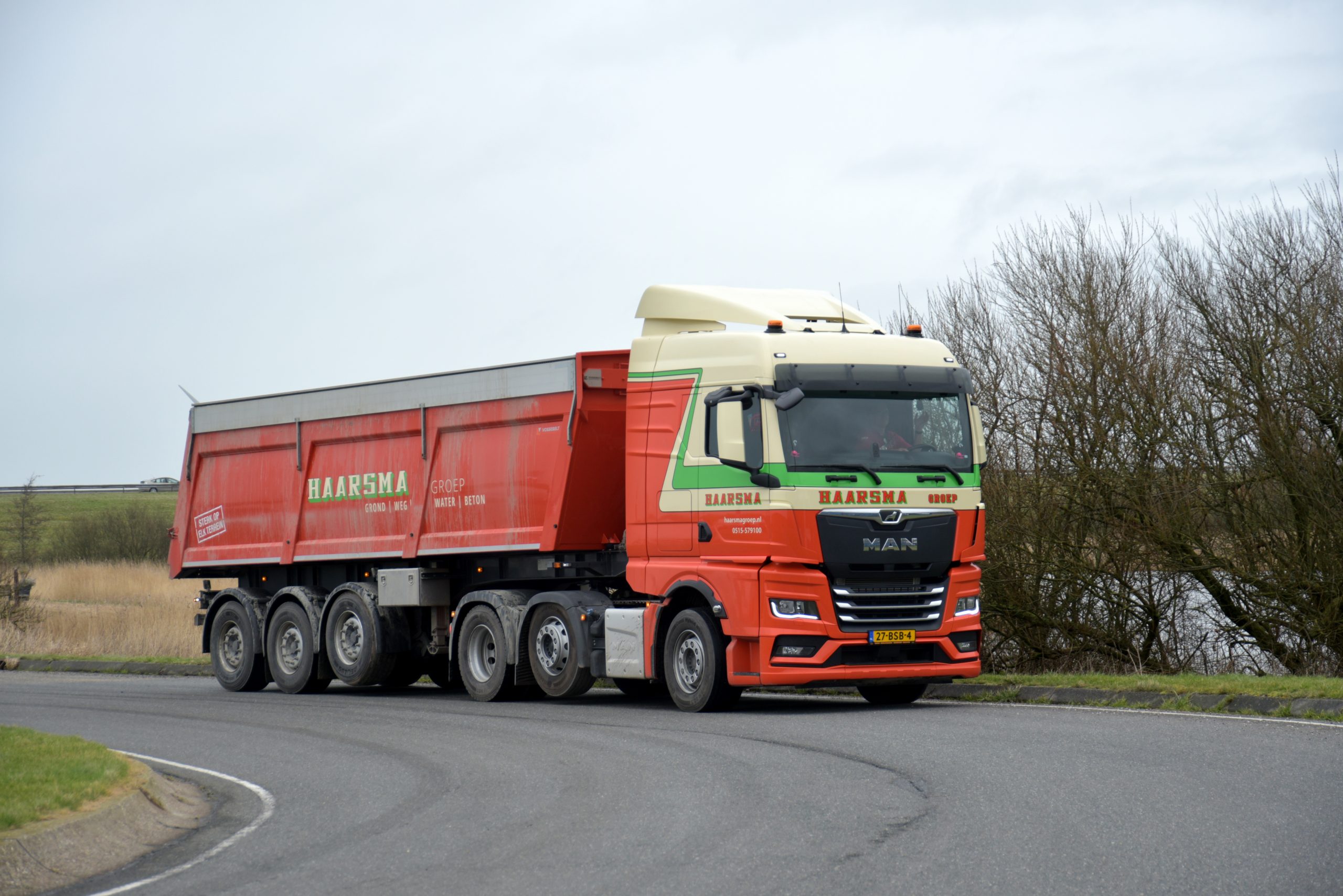 Haarsma Groep uit het Friese Tjerkwerd heeft een MAN TGX 26.470 6×2/4 BLS in gebruik genomen. De voorloopastrekker wordt ingezet in combinatie met een nieuwe Stas kipper-oplegger voor het vervoer van slib, zand en grind en andere grondstoffen voor de bouw en de wegenbouw.