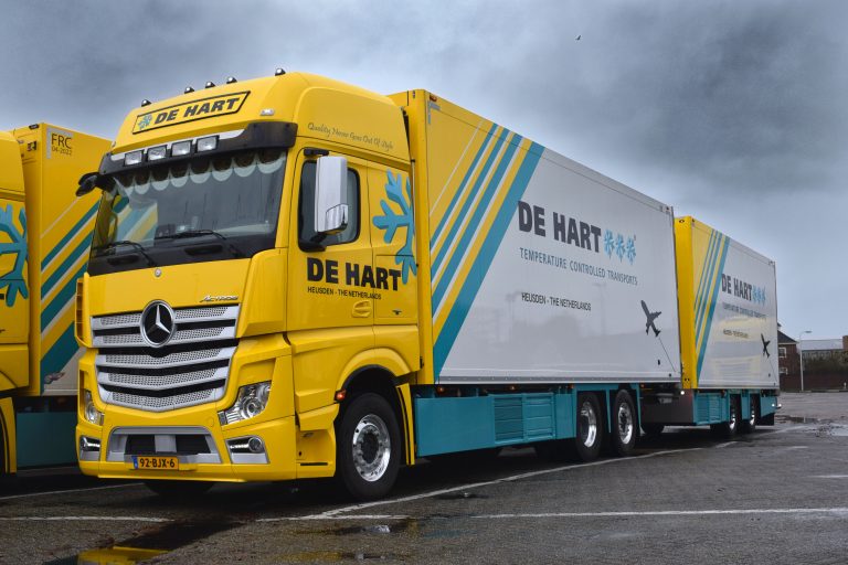 De Hart Temperature Controlled Transports heeft haar zevende Mercedes-Benz Actros in gebruik genomen. De auto is opgebouwd met een Schmitz opbouw en Carrier onderbouw koelmotoren.