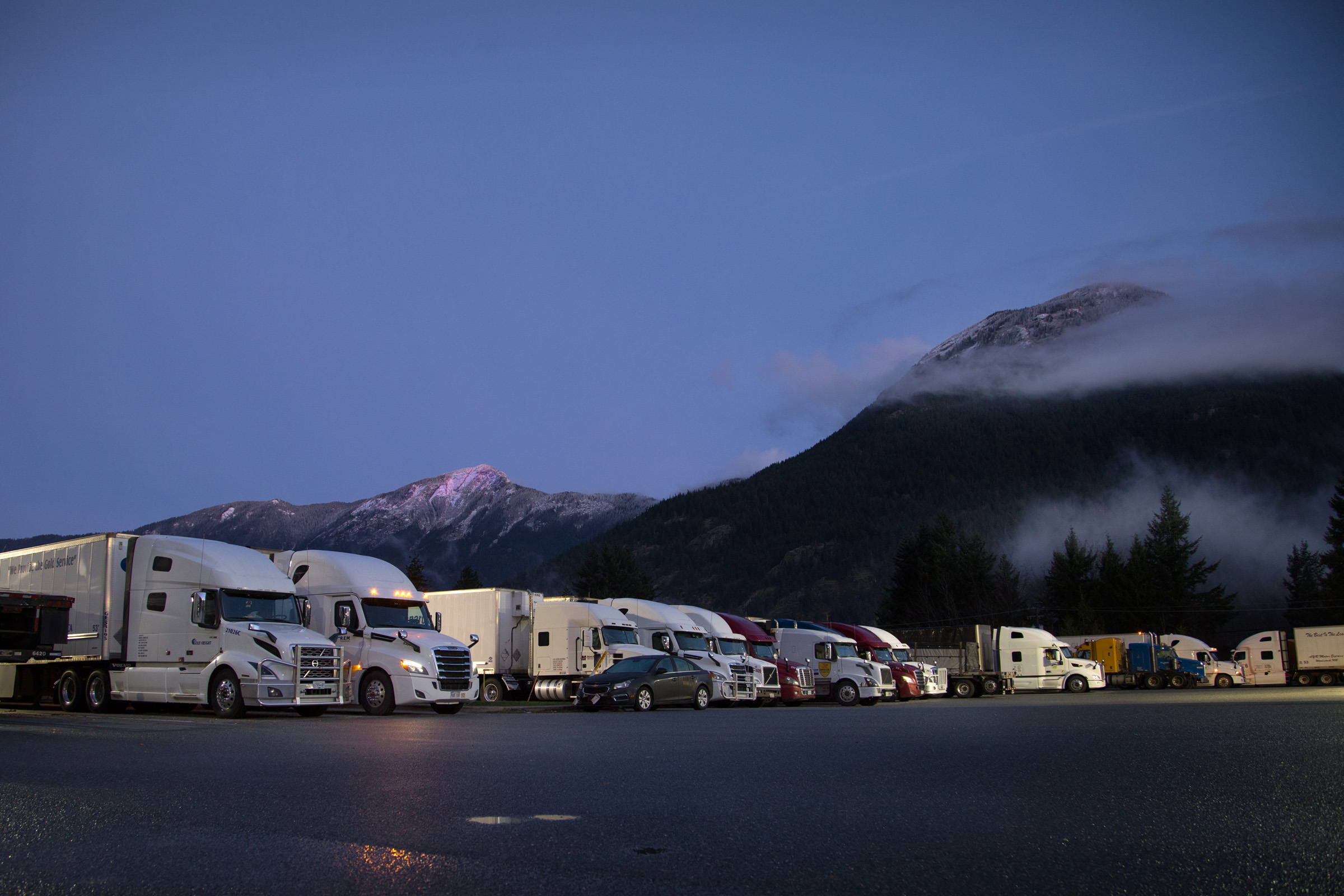 In het zuiden van de Canadese provincie British Columbia staan sinds zondag honderden chauffeurs vast op parkings, truckstops en langs de kant van de weg na extreem noodweer.