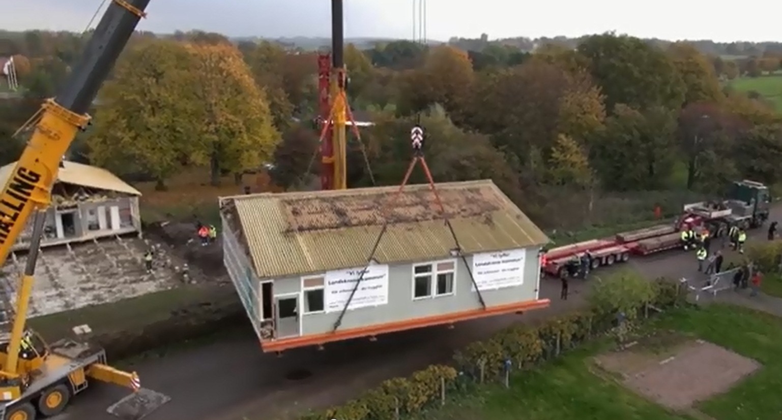 Het ging om een huis, een kinderdagverblijf, waarvan een brok van vijftien bij twaalf meter op een dieplader gehesen werd, verplaatst werd en op z’n nieuwe adres weer vaste grond onder de vloer kreeg.