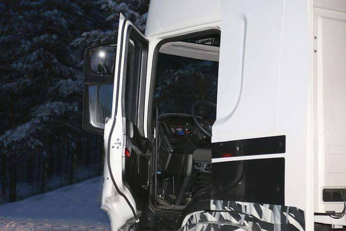Diverse foto’s van gecamoufleerde nieuwe Scania’s hebben ons reeds bereikt. Maar nu hebben we iets nieuws. We ontvingen twee lage-resolutie-beelden waarmee we voor het eerst een kijkje kunnen nemen de cabine in.