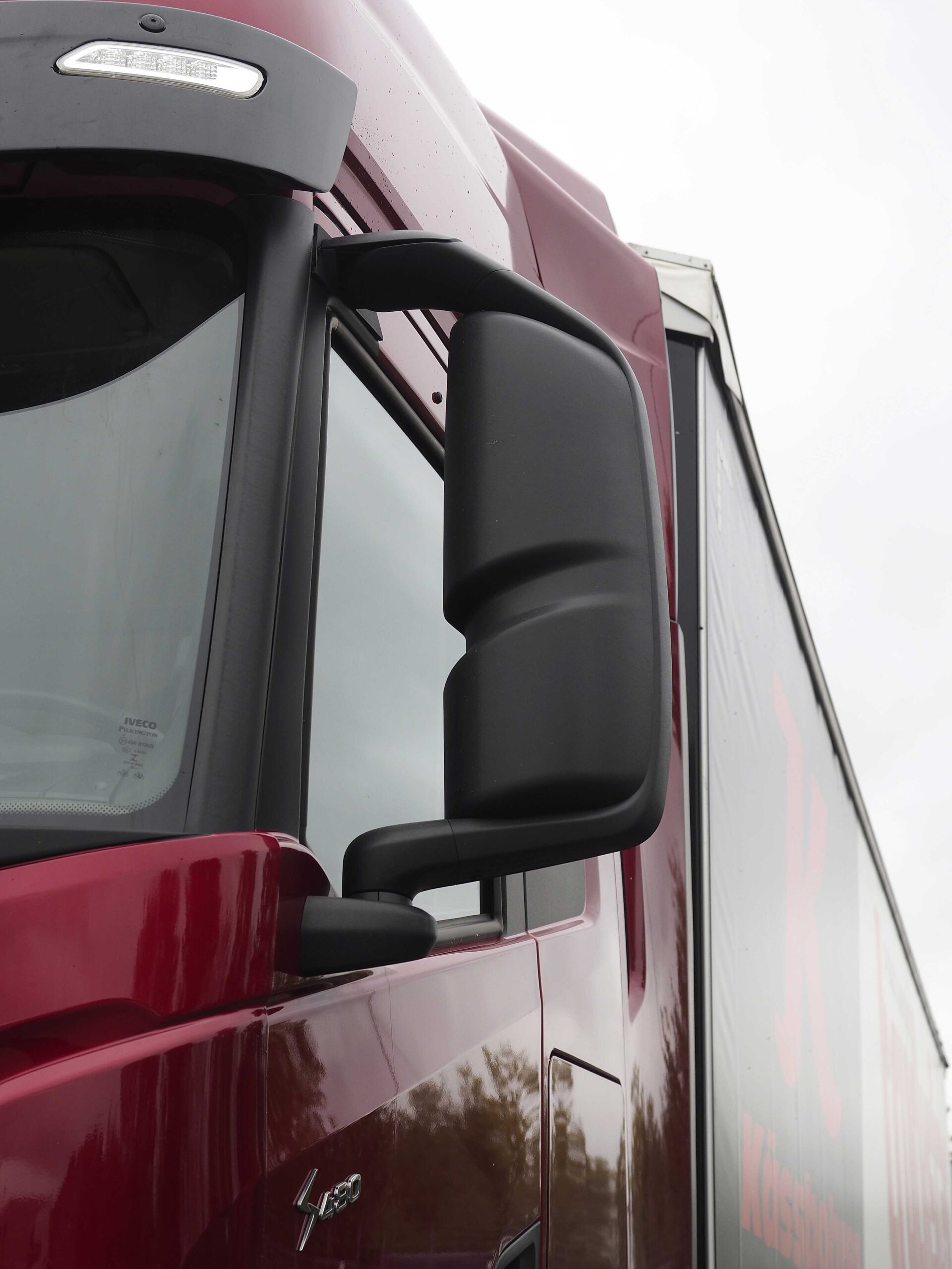 In elk geval is het een fijn weerzien met een vrachtwagen waarvan we al eerder onder de indruk waren. Het donkerrood metallic staat hem goed, maar we weten door de vele klantenauto’s dat een goed kleurenschema hem nog meer laat stralen. De testauto doet zijn best met meegespoten zijskirts, glanzende Alcoa’s en zowaar een zonneklep en zelfs een reservewiel! Dat kost misschien iets aan brandstof, maar het oog wil ook wat, zo vinden ze bij Iveco.