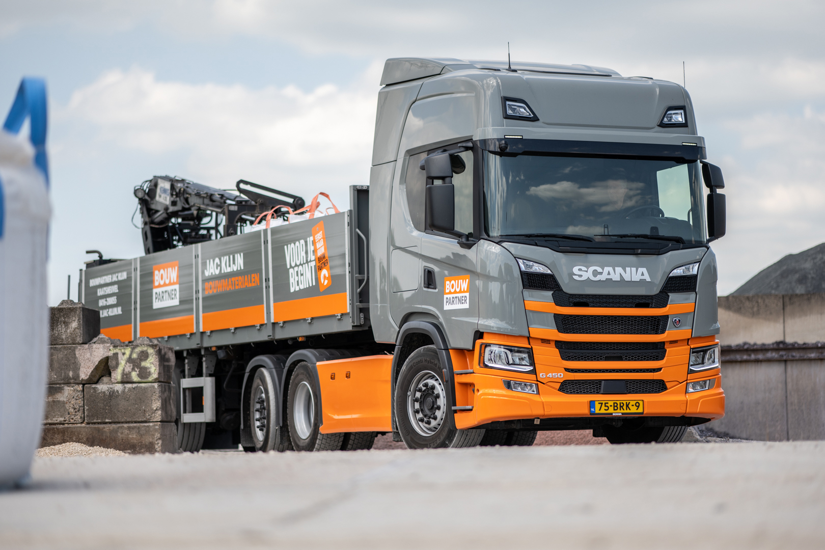 Bouwpartner Jac Klijn Bouwmaterialen BV uit Kaatsheuvel zette recent een nieuwe rondom luchtgeveerde Scania G450 6×2*4 met een hoog dak en een gestuurde hefbare naloopas op de weg. Het is voor het eerst in 30 jaar dat het bedrijf een nieuwe truck van dit merk koopt. Bijzonder daarbij is de bewuste keuze voor een langlopend full service contract. De auto staat voor een korte twee-assige stenentrailer en wordt voornamelijk ingezet voor de distributie van bouwmaterialen naar klanten.