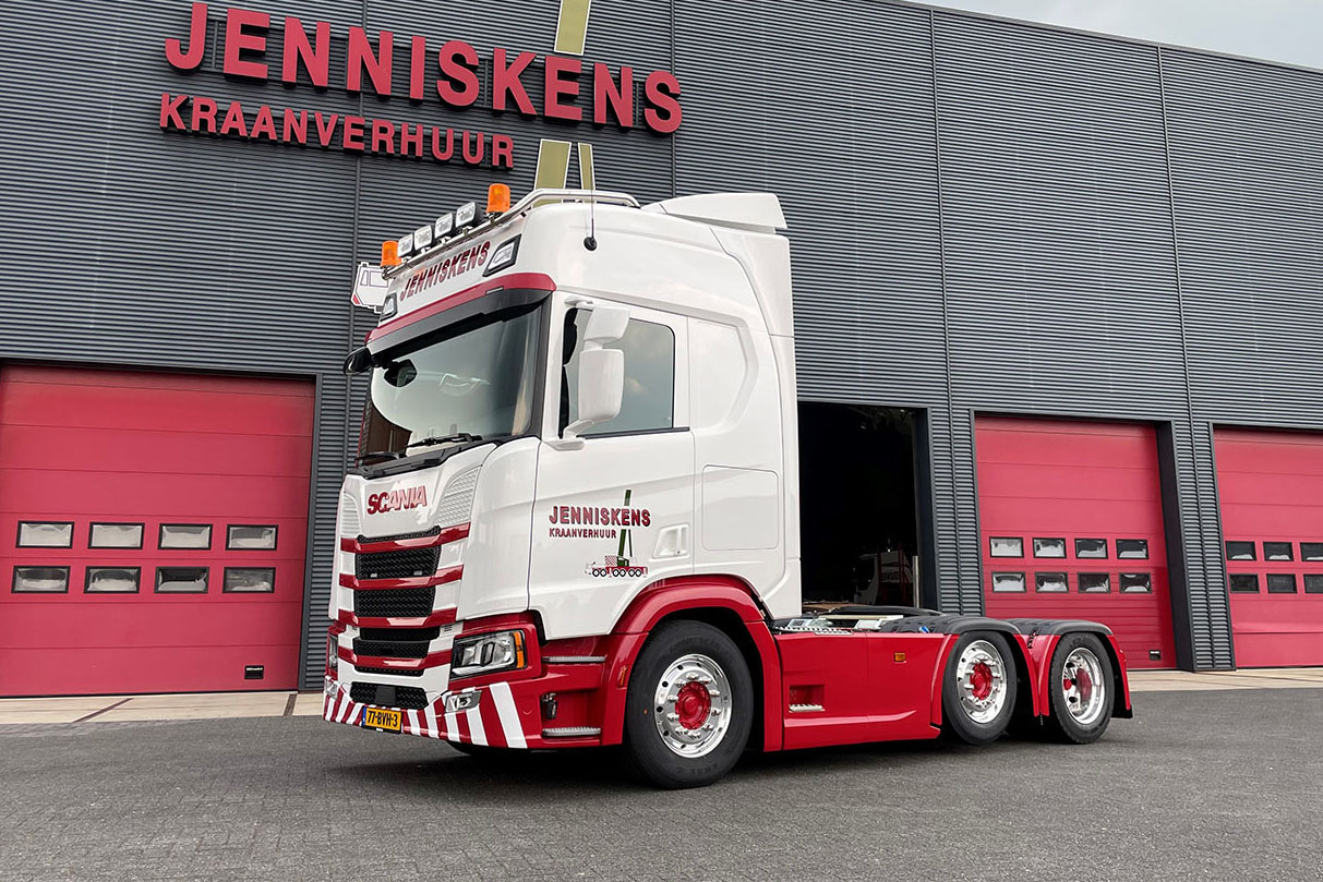 Jenniskens Kraanverhuur draait haar hand niet om voor de meest uitdagende hijsklussen en speciaal transport vraagstukken. Om deze bedrijfsbelofte kracht bij te zetten, schafte het bedrijf twee imposante Scania trucks aan. Een R540 8×2*6 widespread, voorzien van de grootste elektrische autolaadkraan van Nederland, én een extra lage R500 voorloopas trekker met de nieuwe efficiënte Scania Super aandrijflijn.