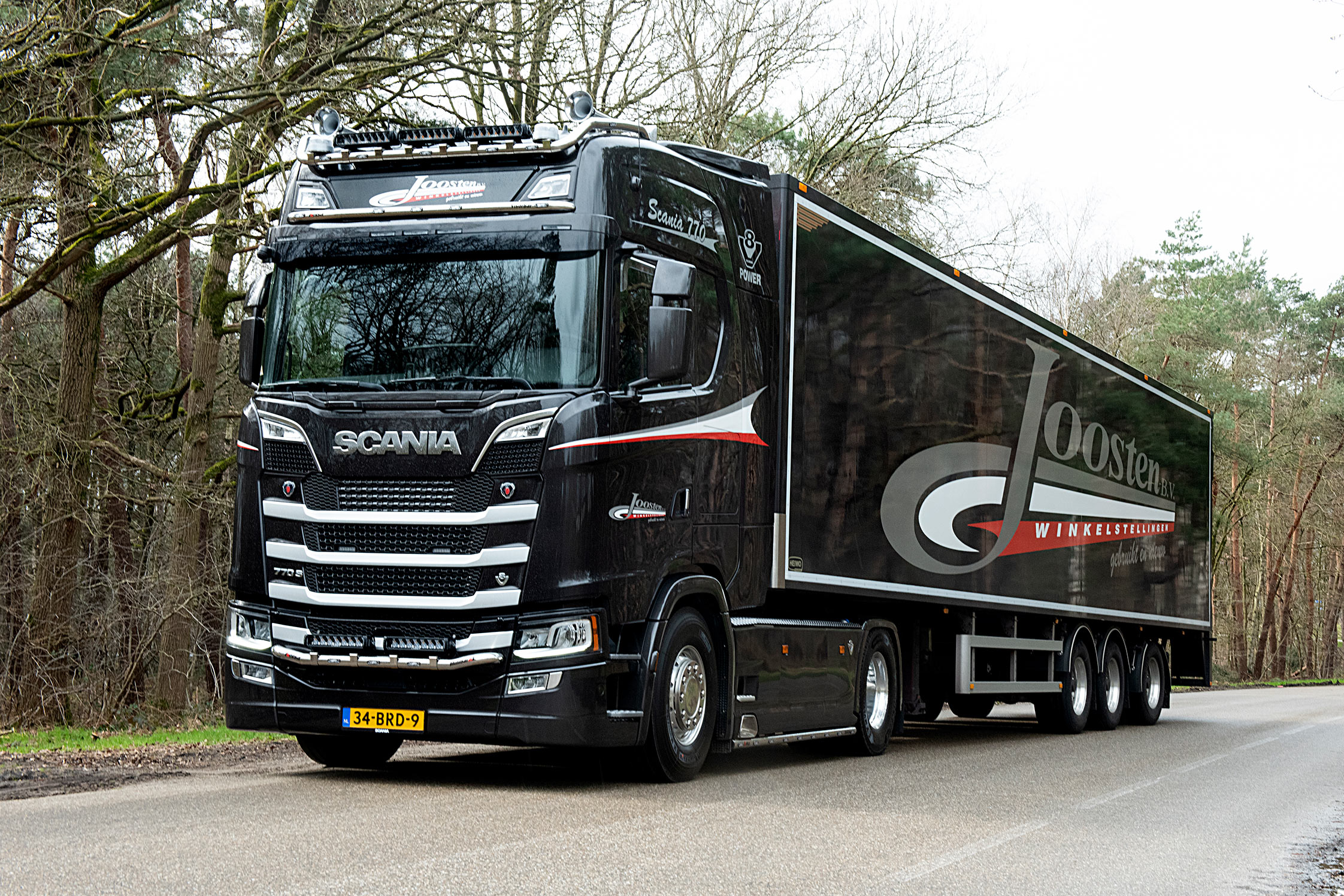 - Joosten Winkelstellingen uit Asten levert sinds kort haar spullen af met een nieuwe Scania 770S; uitgerust met de sterkste truckmotor die op dit ogenblik af-fabriek leverbaar is.