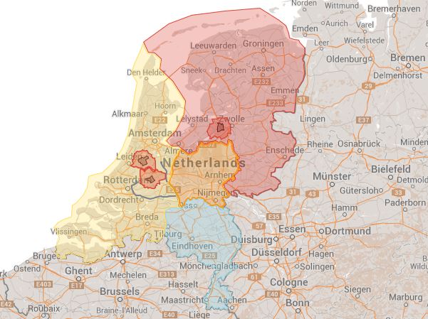Nederland is momenteel opgedeeld in vier transportregio’s omtrent het vervoer van pluimvee.