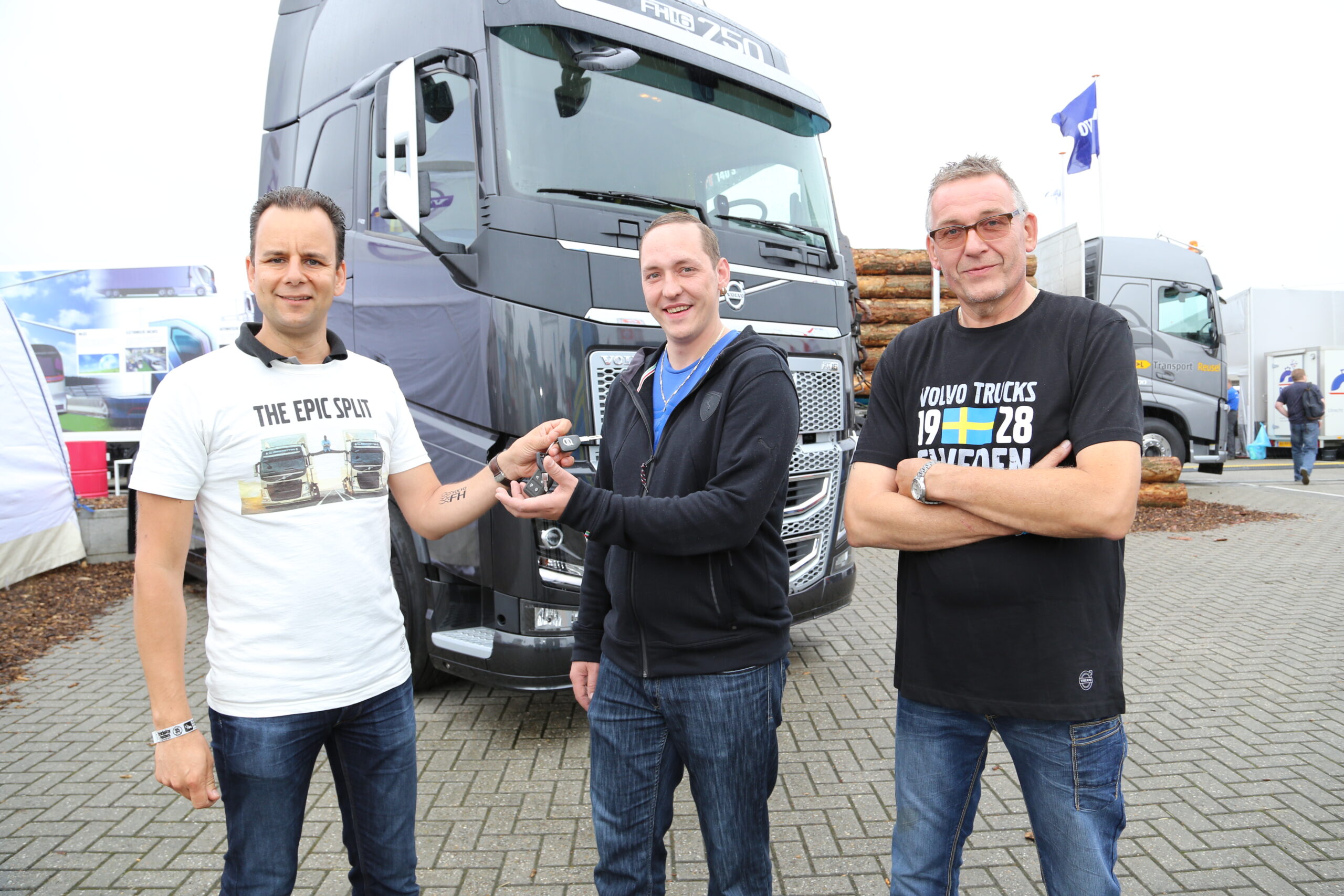 Kevin zag de veilings-actie op Facebook – de hoogste bieder mag een week lang op een Volvo FH16 750 rijden. De bekendmaking was op de Volvo-stand tijdens het Truckstar Festival.