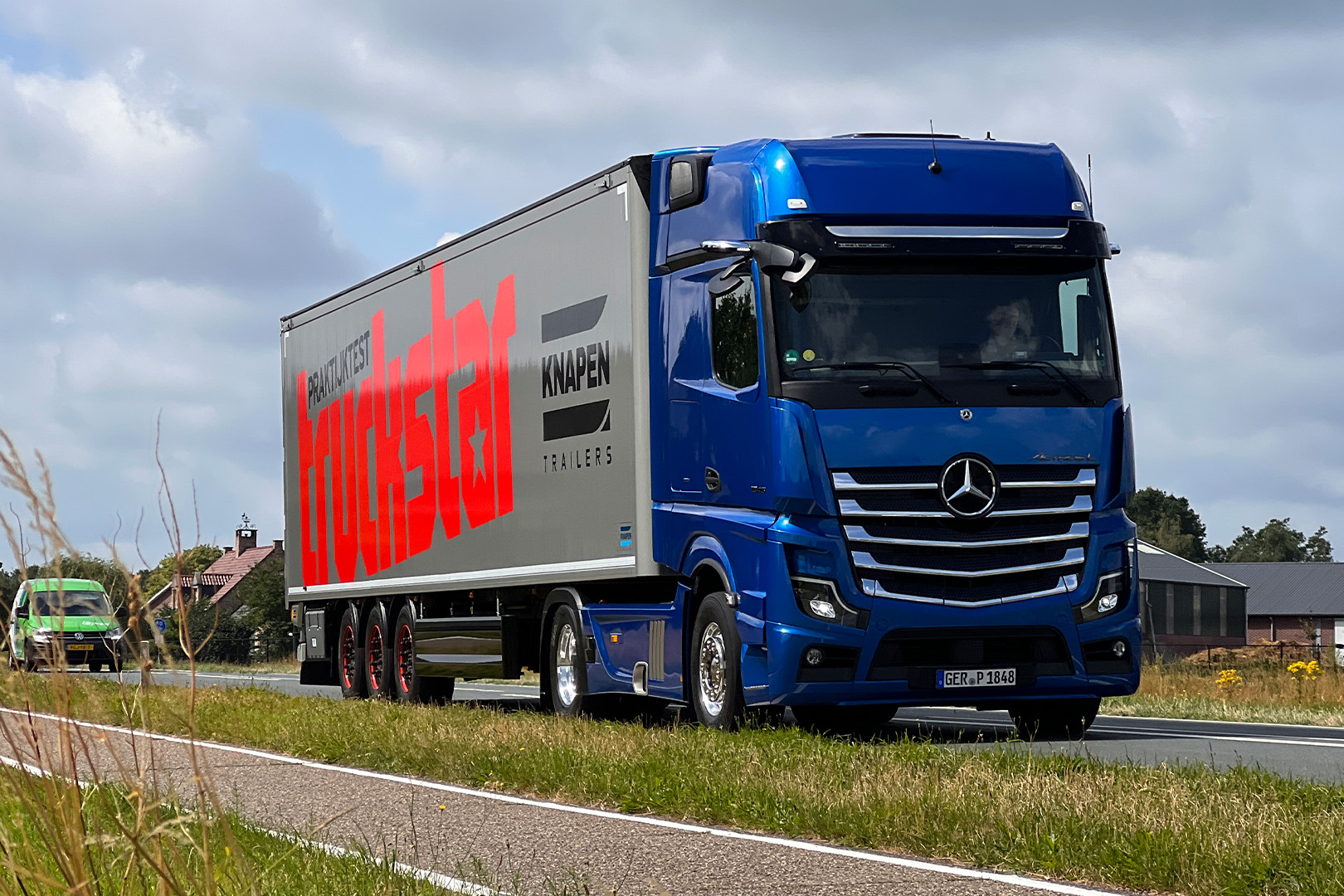 Knapen Trailers is al een aantal jaren leverancier van de Truckstar Praktijktesttrailer. Die er niet alleen bijzonder fraai uitziet maar ook uitstekende testresultaten levert. Truckstar heeft van diverse truckfabrikanten complimenten over het rijgedrag van de trailer in ontvangst mogen nemen. Wederom een bewijs van de goede bouwkwaliteit. Wij zijn er dan ook trots op Knapen Trailers als partner te mogen hebben.