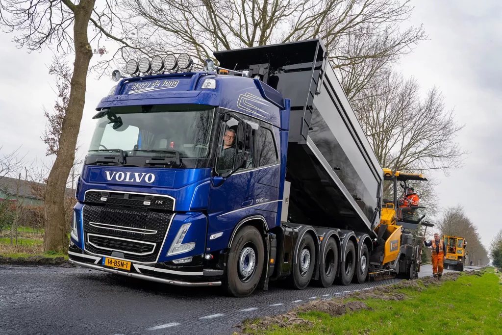 Zijn werk bestaat voornamelijk uit het vervoer van asfaltmachines op een dieplader en het vervoer van asfalt en zand voor de wegenbouw. Met zijn vorige auto, een 4-asser, kon hij maximaal 25 ton laden. “Ik mag via Jan Bakker veel werk doen voor de Van Gelder Groep en heb daardoor vaak contact met uitvoerders. Tijdens die gesprekken merkte ik dat er steeds meer vrachtauto’s met circa 30 ton laadvermogen rijden. Wegenbouwers willen uniformiteit en daardoor had ik al snel door dat die 30 ton laadvermogen de toekomst zou worden. Maar voor mij wel in combinatie met vijf assen en een dieplader erachter zodat ik geen concessies hoef te doen”, zegt Harry de Jong.