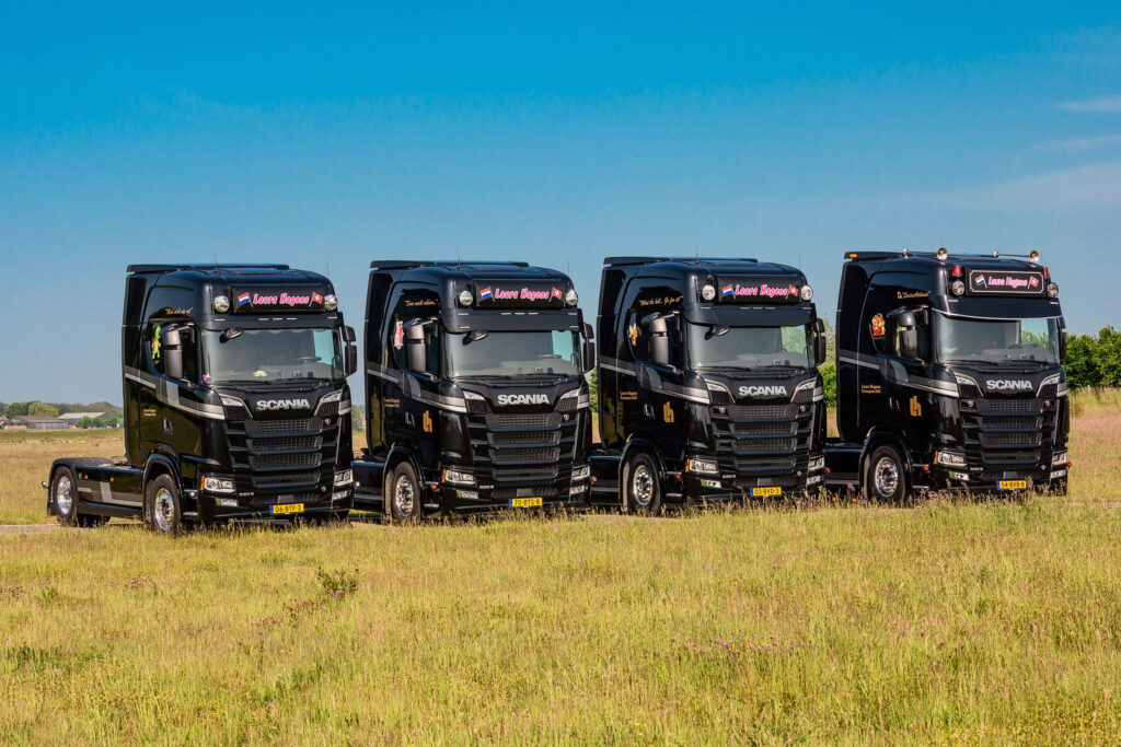 Laura Hagens Transport neemt dit jaar nog 13 nieuwe Scania 4×2 trekkers in gebruik. Het gaat om zeven stuks 530S met V8-motor en zes 500S met Scania’s nieuwste Super-motor. Alle trucks zijn voorzien van een hydrauliekpomp, een negentons vooras en luchtvering rondom.