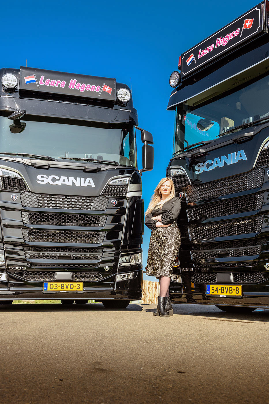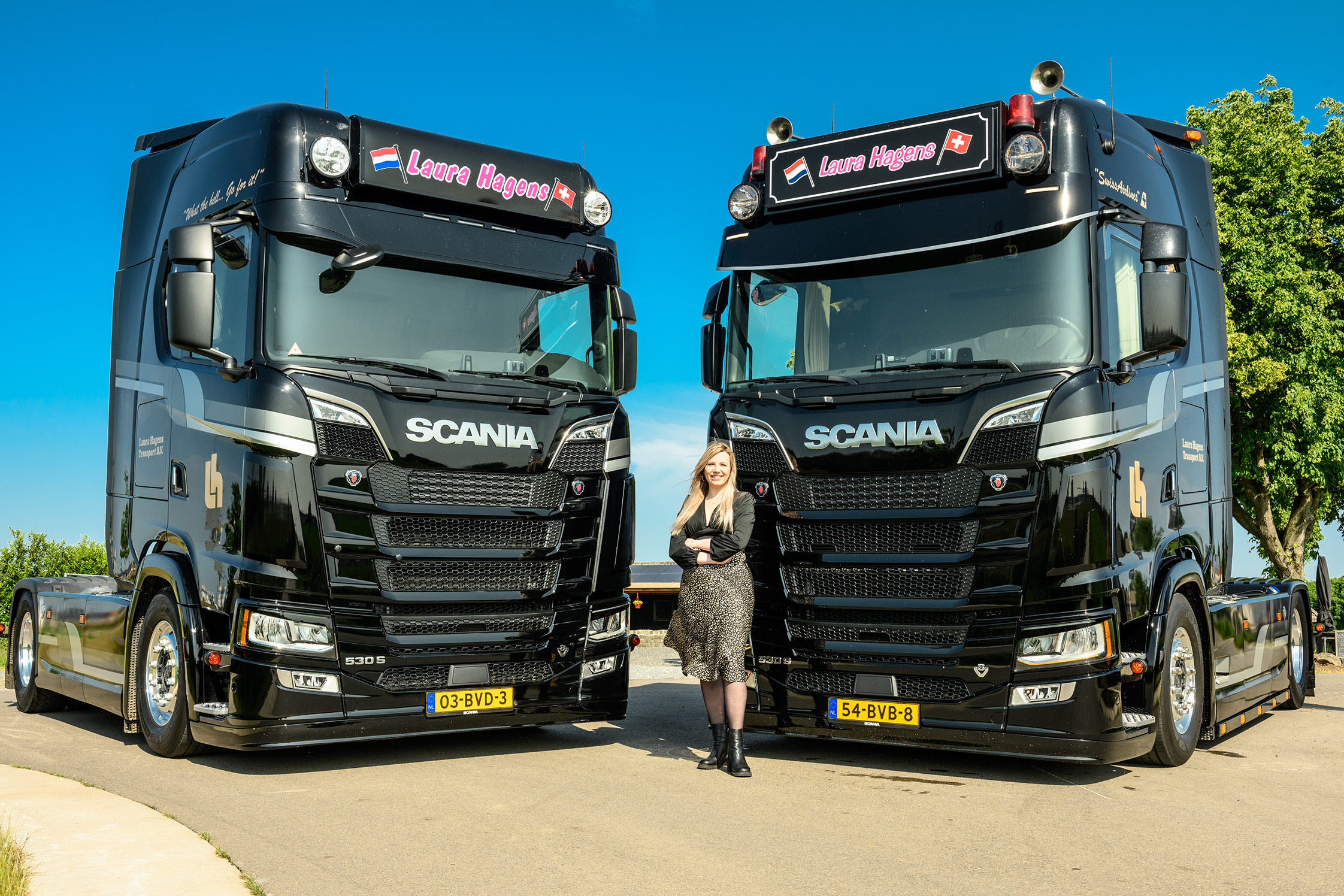 Dat Laura helemaal in het transport zit, zelf gereden heeft en een enkele keer nog wel eens wat omkoppelt, was binnen de familie Hagens geen automatisch gelopen race. “Mijn vader zag zijn trots over de weg later wel doorgaan in de familie. Echter dacht hij dat die rol meer weggelegd was voor mijn oudere broer Danny. Alleen gebeurde er twee dingen. Ik zag dat beslist anders dan mijn vader en mijn broer zit wel in het bedrijf maar wil gewoon genieten van het rijden en niet managen. Hij zit namelijk nu zelf te wachten tot dat zijn mooie 500S voor hem geleverd wordt.